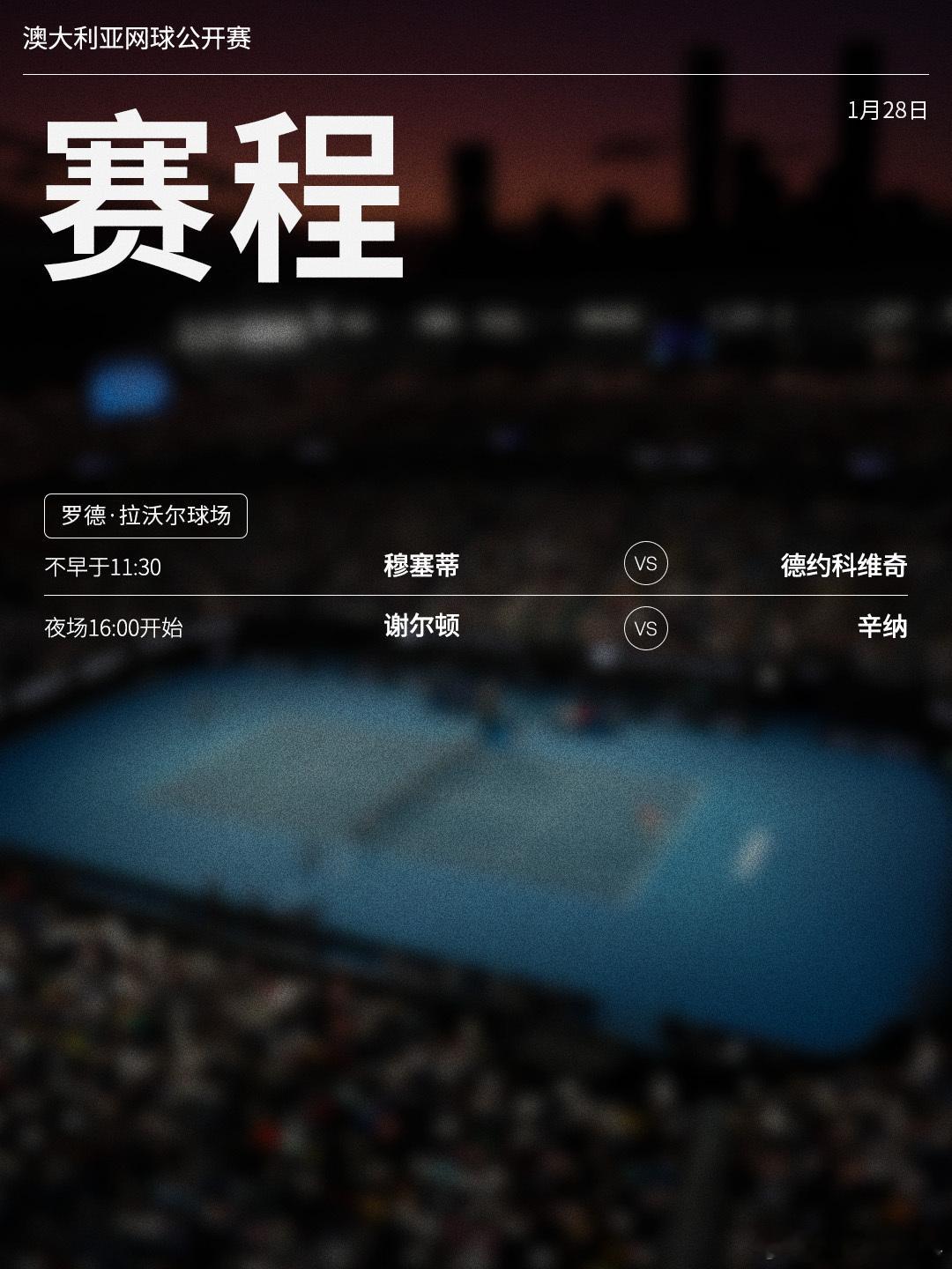 澳网2026 1月28日将展开下半区男单四分之一决赛的争夺,赛程见图(均为北京时间)📅🎾 德约、穆塞蒂日场对决,辛纳、谢尔顿相约夜场,两场胜者将在半决赛相遇。网来不息ATP
