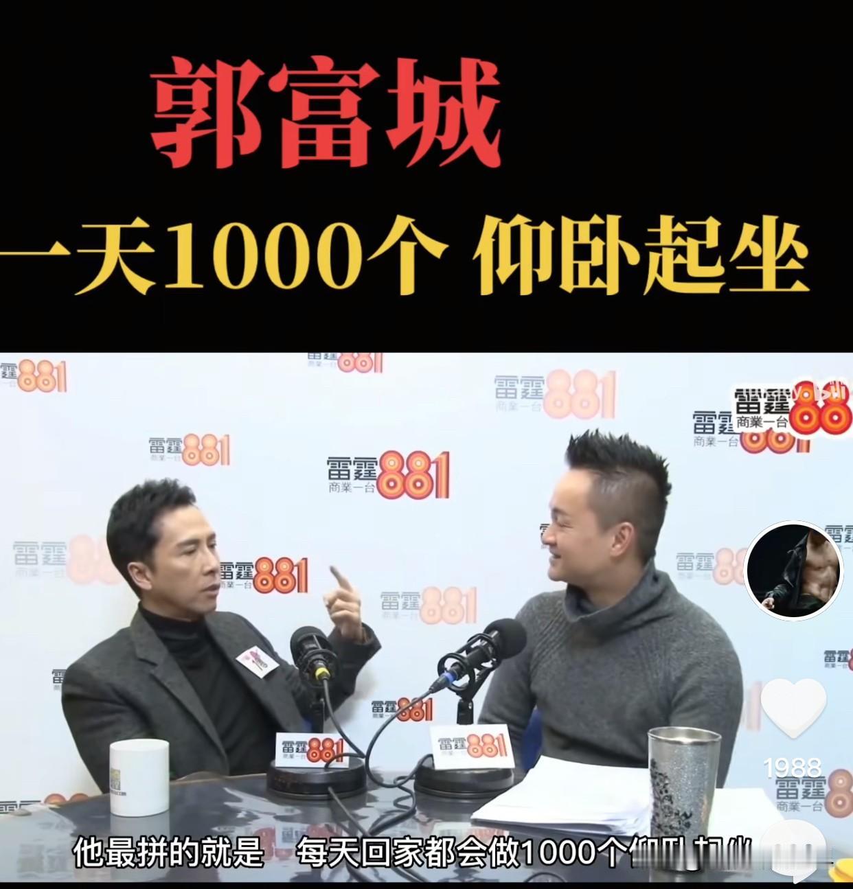 郭富城绝对是娱乐圈自律性最高的艺人,61岁的郭富城本月24号刚举办的演唱会,在舞台上面跑动起来,跟本不会相信他已经61岁,61岁的年龄确是三四十岁的身体状态,从出道至今体重一直维持在62公斤左右,而且还坚持每天大量锻炼身体,这就是从没见他胖过的原因,甄子丹曾经采访时透露,郭富城有段时间每天坚持1000个仰卧起坐,这个很多人都不会信,可这就是事实,还有郭富城自己说过,不管每天多忙,都会抽出1个小时,在跑步机跑步1个小时。