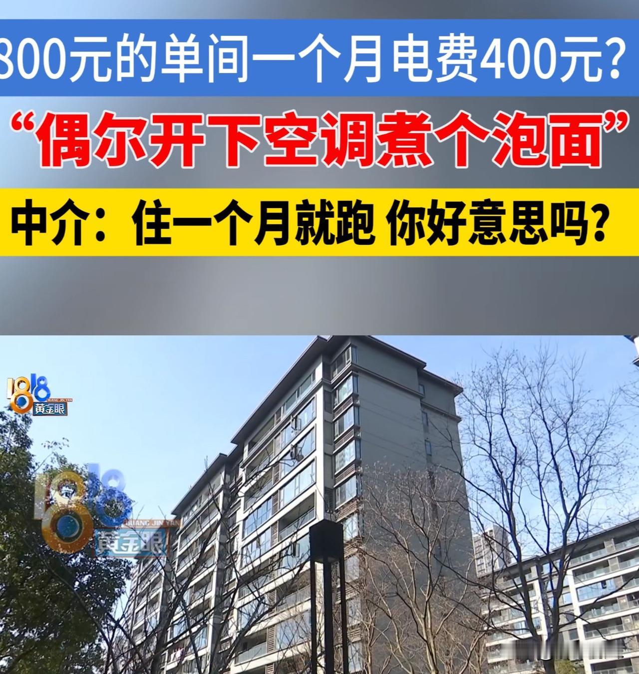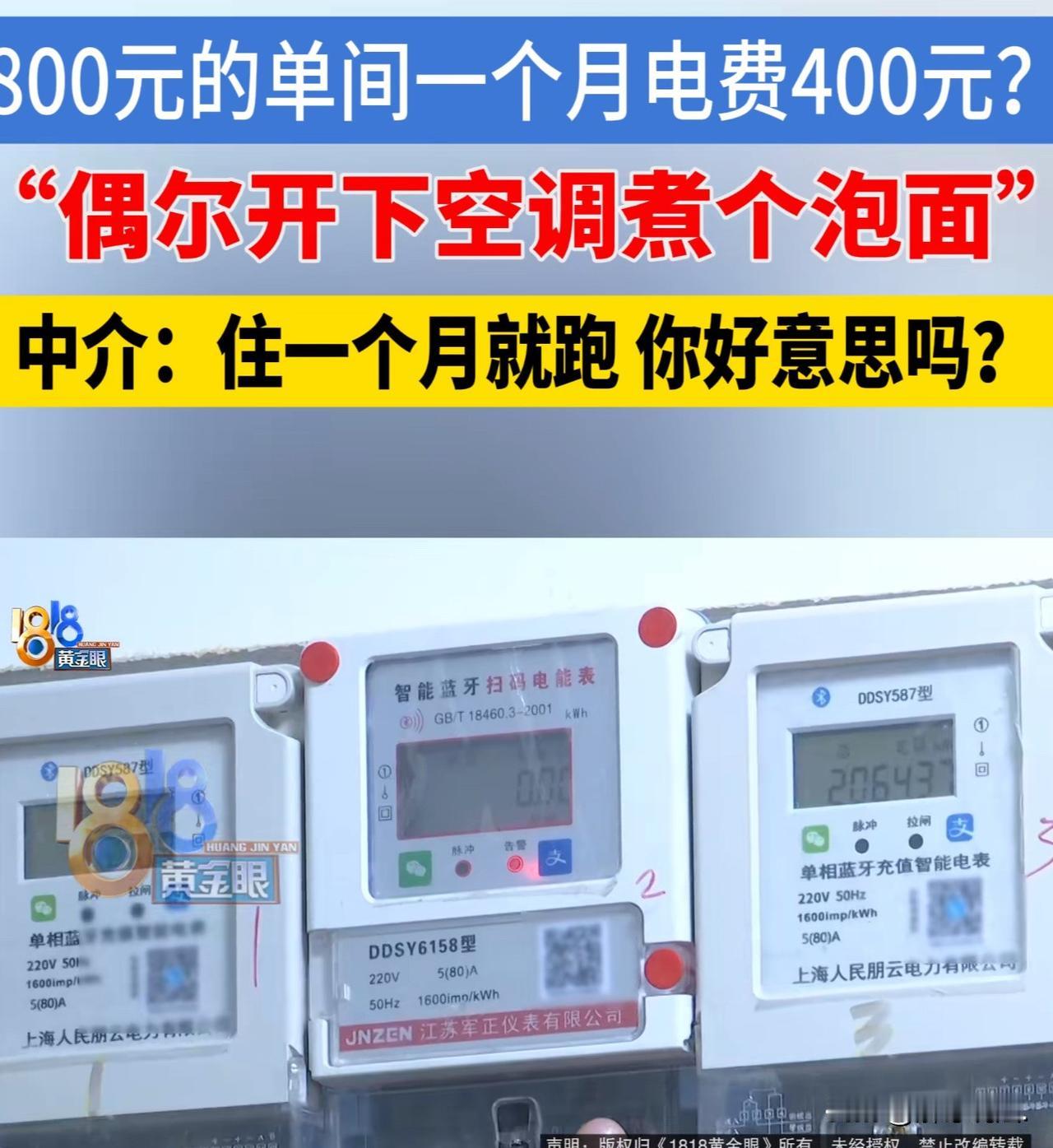 浙江杭州,男子通过中介在某小区租下一单间,租金每月800元,押金800元。同时合同上注明,电费1元1度,水费6元10吨,宽带费每月30元。同时约定租期未满押金不退。随后,男子交了一个月的费用和押金。谁知,男子和妻子住了一个月后,发现竟用400度电,高达400元。男子发现不对劲了,平时就洗个澡、偶尔开一小时空调,不开灶,顶多煮个泡面,根本用不上多少电!男子不想继续当冤大头,决定搬走,她要求房东退还押金,房东认为男子故意找茬,想退押金没门儿!让男子去找中介,中介又说,住一个月就跑,咋好意思了? 去年12月,程先生和妻子一起来嘉兴工作,通过中介在云悦里小区租下了一个带卫生间的单间。 按照双方约定,这套单间的租期为一年,从12月15日正式起租,租金每月800元,支持月付,押金同样是800元。 合同上用手写方式明确了各项费用标准:电费1元1度,水费6元10吨,宽带费每月30元,同时注明租期未满押金不退。 程先生一开始其实只想先短租两三个月,观察情况后再决定是否长租,中介当时满口答应“没问题”,这让他放下心来,当场通过转账给中介支付了一个月租金、首月宽带费和押金,合计1630元,随后便和妻子正式入住。 可住进来没多久,程先生就发现了不对劲了,家里的电表跑得格外快。 他仔细算了算,自己和妻子平时工作繁忙,大多要到晚上10点、11点甚至更晚才回家,日常用电也就仅限于洗个澡、偶尔开最多一小时空调,再加上偶尔煮个泡面,根本用不上多少电。 但让他震惊的是,仅仅一个月时间,他就交了差不多400元电费,而这400元对应的电量,正是400度。 更关键的是,这一个月里,他和妻子实际在小区居住的时间最多只有20天,其余时间都回了无锡的家,如此低的居住频率,却产生了高额电费,这让他觉得实在离谱! 1月12日,程先生的妻子主动联系房东,告知因电费太贵,决定搬走,要求房东退还押金。 房东却说,之前有租客夏天24小时开空调都没反映过电费问题,到你这怎么就有问题了?话里话外的意思,就是说程先生故意找茬儿!想退押金没门儿。 还说她已经给了中介一年的中介费,让他们夫妻俩有什么问题,找中介去。 程先生认为房东蛮不讲理,违约是对方的原因,不是自己的问题,凭什么不退800元押金。 程先生想着,不蒸馒头争口气,就算不退押金,也要出这口恶气,于是,一气之下找来记者曝光此事。 程先生气愤的告诉记者,其实周边很多租客都遇到过类似情况,但大多选择吃哑巴亏,可一个月400度电实在太离谱了,自己不想继续当冤大头,才搬走的,违约是甲方原因造成的,理应退还押金。 同时,程先生向记者展示了自己租住的单间照片,从照片中能看到,房间里的洗衣机和热水器都标注着三级能耗。 他还拿出了客厅里的电表照片以及手机上的电费充值记录,记录显示,刚入住的第一个星期,电费就消耗了100度。 记者了解到情况后,联系上中介,中介也一肚子怨气,指责程先生就租一个月,就想跑,咋好意思要求退押金? 还说只从房东那里收了400元中介费,让程先生找房东去。 随后,记者拨通了房东的电话,对方说自己在外地,要过两三个月才能回来。 在电话中,程先生和房东说法不一,程先生表示签合同前曾和中介说过想先短租,中介当时承诺“签一年没问题”。 但房东却称自己并未参与沟通,签合同时也不在场,依旧让程先生找中介去。 房东对程先生反映的一个月400度电的情况,是这样解释的:合租房里装的电表确实和普通电表不一样,“主家用的是五分表、六分表,合租房里装的是七分表,会比普通电表稍微快一点,这是合租房统一的配置”。 同时,房东说只是日常使用,根本用到400度电,猜测程先生可能使用了电锅等大功率电器,或者长时间开空调。 对此,程先生一口咬定,确实没有用大功率电器,空调也没有经常开。 双方争执不下,最后,房东只愿退还400元押金。 程先生表示,后续他会排查一下电表。 支持程先生继续维权,租客不是冤大头,电费离谱还不让退押金,换谁都咽不下这口气。 合租房乱象不少,但“电表加料”“遇事甩锅”不能忍,房东和中介该讲点诚信,有问题解决问题,别让租客吃哑巴亏!