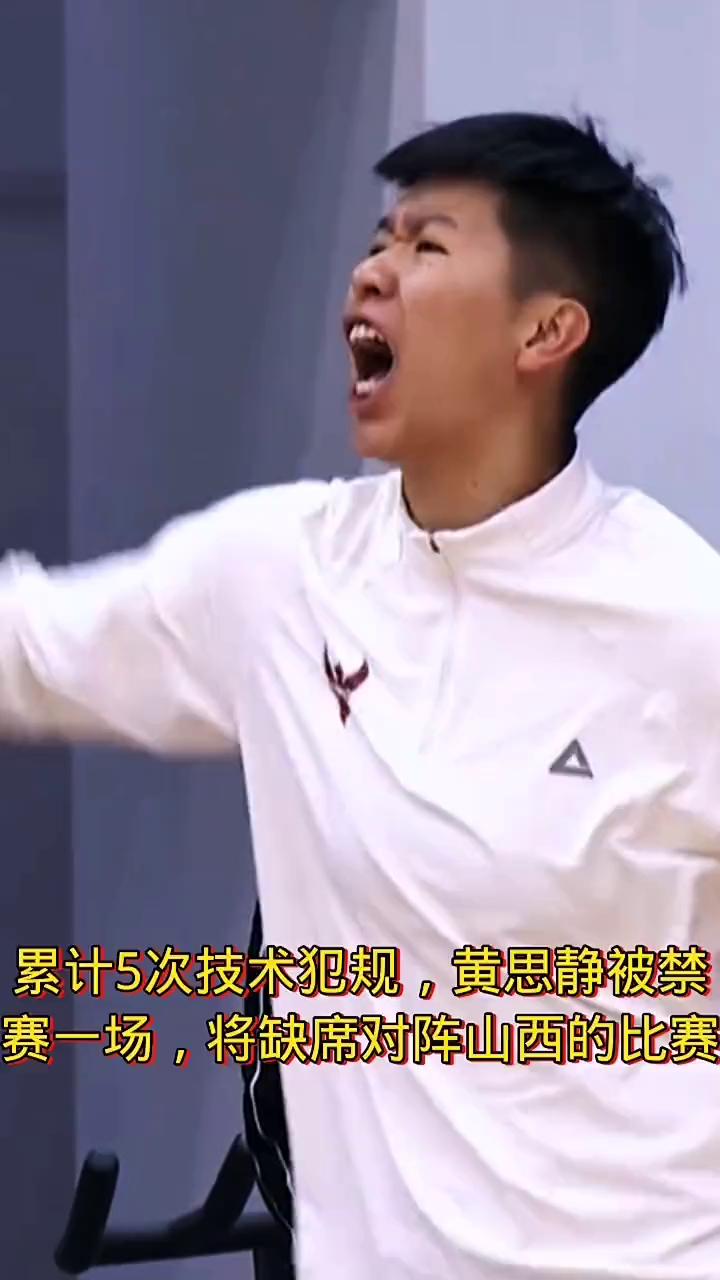 累计5次技术犯规,黄思静被禁赛一场,将缺席对阵山西的比赛。