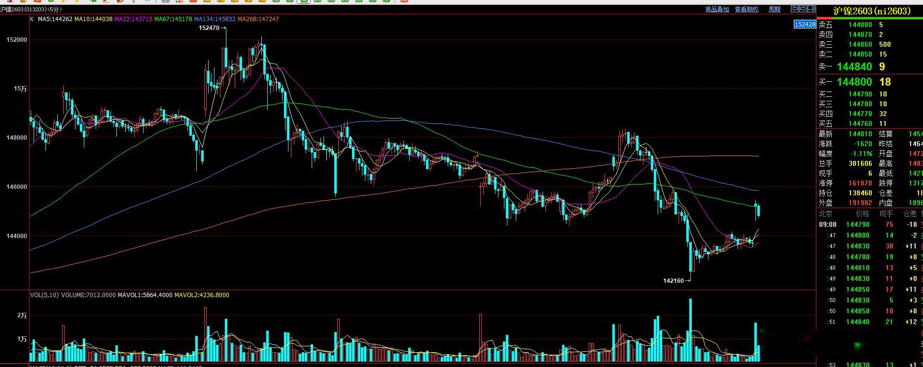 沪镍 完成第一目标 空间7000个点以上!可以选择减仓后 继续下看!