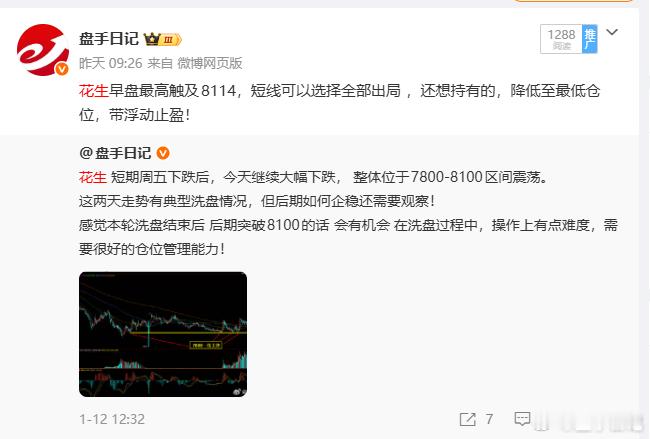 花生昨天提示可以全部出局 花生出局后 可以等待回调继续逢低多思路,整体来看,花生在大区间构建底部形态,预计震荡时间周期会比较长一些,完成震荡周期后 后期可能还有机会 但不一定是05合约!