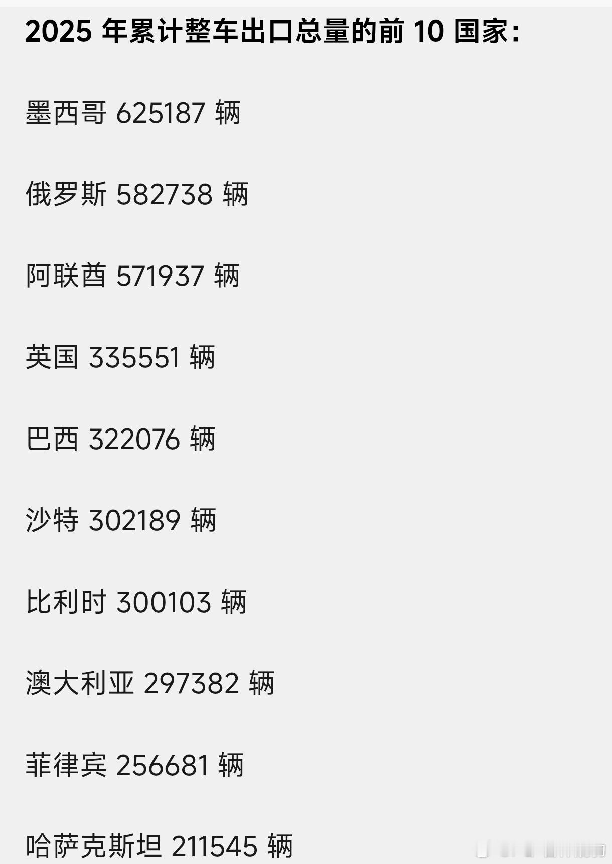 中国汽车第一出口目的国易主 虽然,墨西哥超越俄罗斯成为第一80%墨西哥本土消化+20%分销北美市场因为,本土化的0关税去美国加拿大的诱惑BYD已经建厂,今年年底投产吉利和奇瑞也在加紧筹划