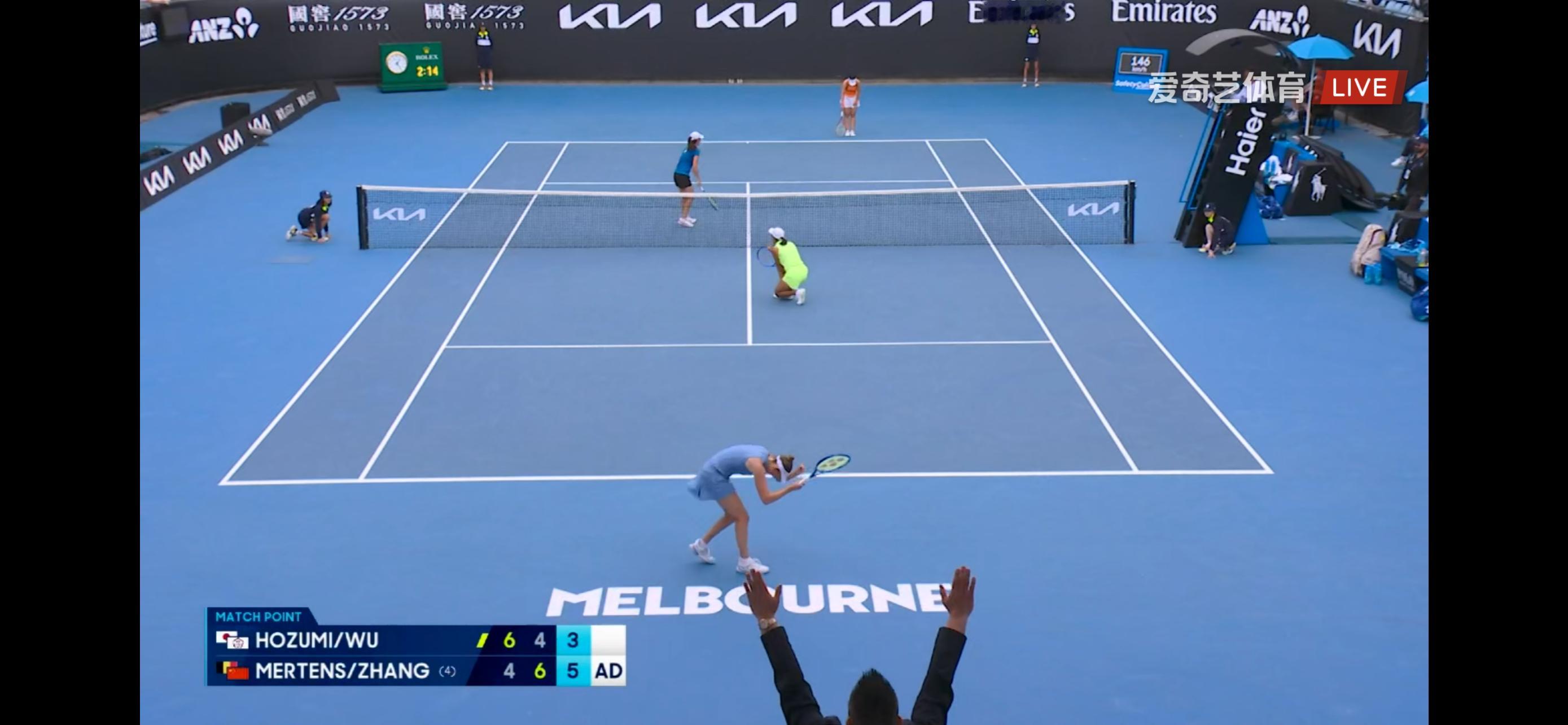 澳网女双1/4决赛,张帅/梅尔滕斯4-6/6-4/6-3逆转穗积绘莉/吴芳娴,