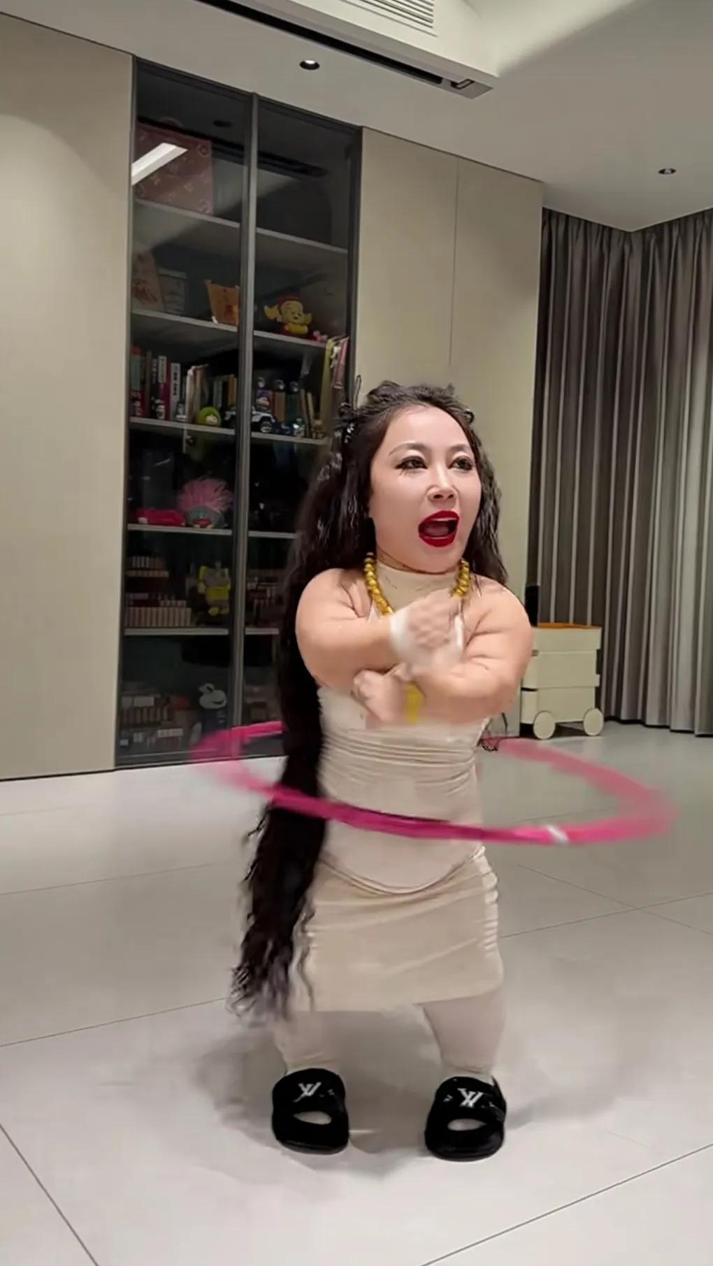 脸蛋长得完美无缺,身材像幼儿,手臂也是像莲藕一样,很可爱,头发太好了又多又长。 大金链子,手镯戴着。 只看头部,就是一个成年的美女,像极了富婆。 头部以下像婴幼儿。