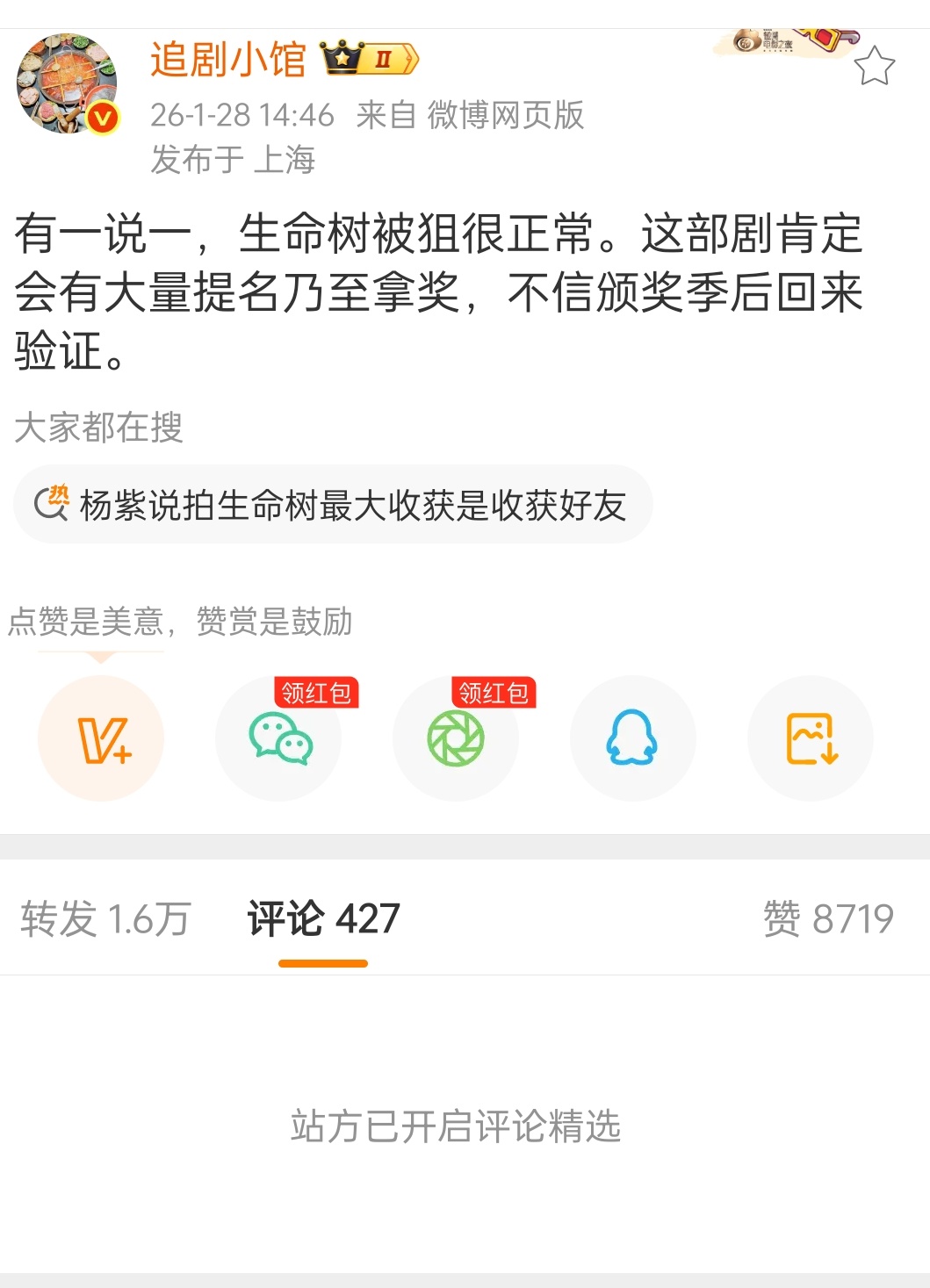 巴紫粉丝这条微博交流到了一万,评论已经被站方精选