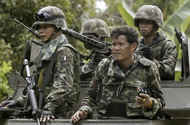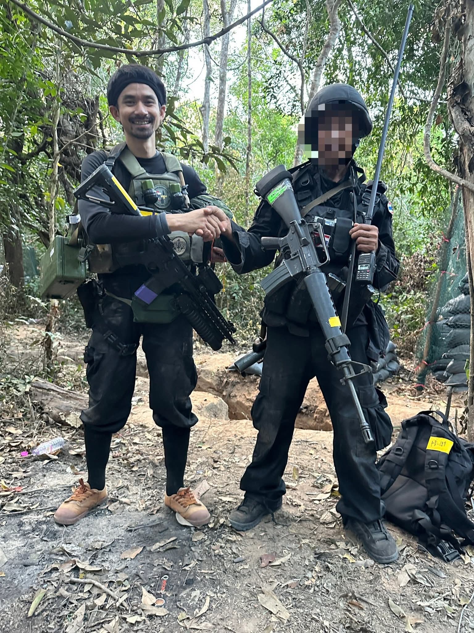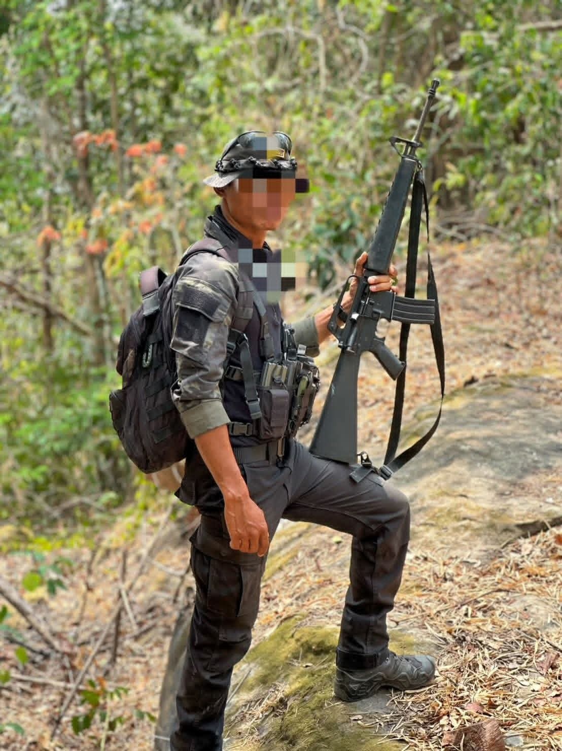 一种泰国特色的“混血”M16A1,图1图2来自本次泰柬冲突的边防民兵,图3图4是驻扎南苏丹的维和人员,图5是2009年左右在南部边境地区维稳反恐的陆军单位。眼尖的朋友可能发现了,这些M16A1很怪,很多零件被换成了A2时代的东西,造成这种现象的原因没有官方说法,但根据我认识的泰国友人的说法,大概是是80年代中后左右,泰军手里的部分M16A1因为高强度使用部件已经磨损严重需要维护翻新,但柯尔特给发来的替换部件都是A2世代的,于是就出现了这种A2枪托,A2握把,model715商业版上机匣,枪管和护木还是M16A1,仍然发射M193弹的缝合怪,另外图6至图9是泰国陆军军械厂出于对短卡宾枪的需求又不想买新枪于是自己锯短枪管并换上自产护木的某种“手搓”CAR15,称为49式卡宾枪(佛历2549年,也就是2006年),这些卡宾枪使用库存的M16A1来改装,部分上述的缝合怪M16A1也被改了一些,所以就出现了图6那样的乍一看是柯尔特model723但仔细看细节对不上的外形。虽然泰国在新世纪以后就大量更换了M16A2为主的发射M855弹的武器,但海量的M193弹还有M16A1枪型的库存导致一直到现在部分单位还存在M193和M855混用的情况,图9也能看出至少在09左右,哪怕是特战司的游骑兵这种精锐单位也还是M4A1和Model653混用。烽火问鼎计划泰柬冲突军迷天地