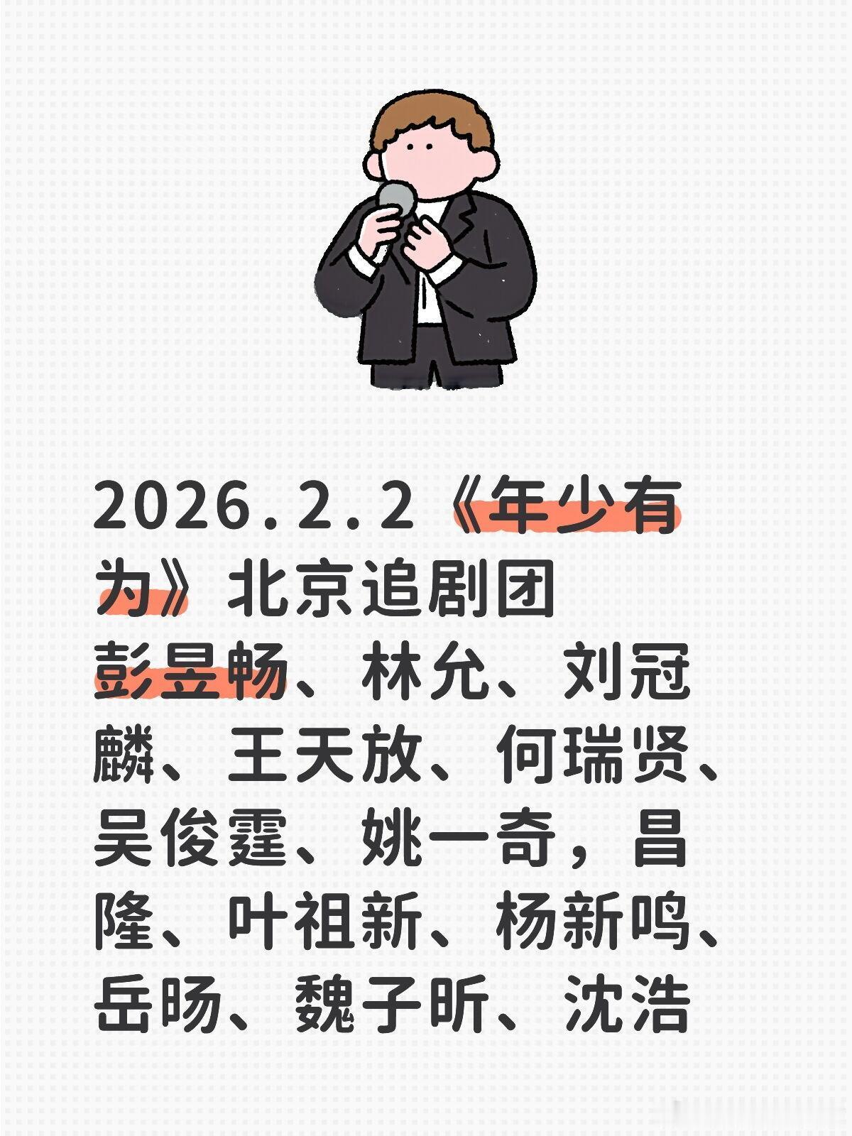 2026.2.2《年少有为》北京追剧团彭昱畅、林允、刘冠麟、王天放、何瑞贤、吴俊霆、姚一奇,昌隆、叶祖新、杨新鸣、岳旸、魏子昕、沈浩年少有为|