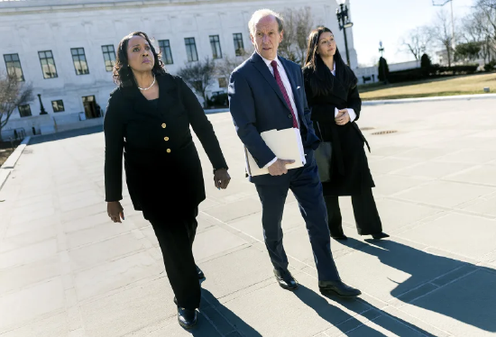 2026年1月21日,美国华盛顿哥伦比亚特区,美联储理事莉萨・库克(左)与律师艾贝・洛厄尔(中)走出美国最高法院。