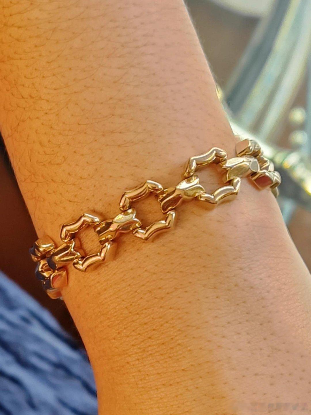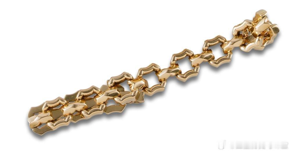 珠宝 比利时王后法比奥拉的黄金链条手链,采用镂空八角形和矩形链节交替设计,材质是18K黄金,相比起一半的链条爆款珠宝,这算是比较特别又精致,法比奥拉曾在自己的订婚仪式上佩戴过它,也是很有历史了,后来,法比奥拉也是将这件珠宝打包留给了西班牙的娘家子侄or慈善机构并在上周五的拍卖会中出售,估价为1875欧~2500欧,成交价为2200欧,没拍起来略可惜。PS:比利时这都不出手吗,还是等着别人白送才觉得香啊。 (图3及本文来源于是ins博主dejoyaenjoya)