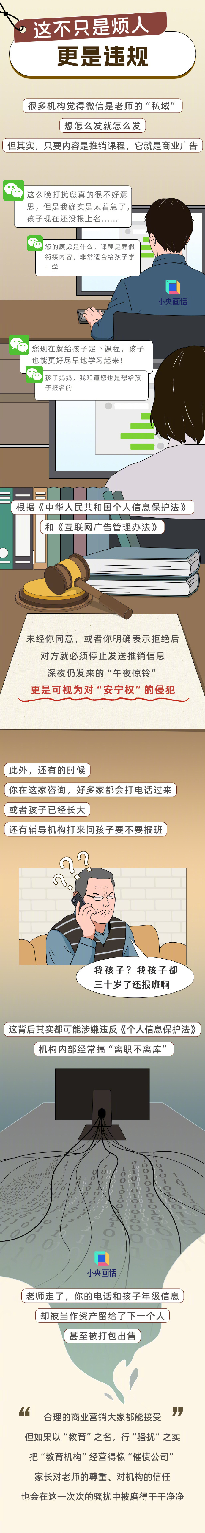 【#寒假开始补课广告围猎家长#】#教培机构天天催续费怎么拒绝# “教培老师夜里十一点发消息,让续班”“我都三十了,还能接到教培机构让报班的电话”“如果不报就耽误孩子了”……近日,不少家长反映,教培机构的“催报”套路越来越深:课程刚开没几节,要求“续报”的信息已经发过几轮;打着“学情诊断”的名义,实则卖力推销;哪怕明确拒绝,电话还是会准时响起。更令人无奈的是,因为作业提醒、直播链接都在辅导老师手里,家长们想拉黑却不敢。对此有网友甚至调侃,“恨谁就把谁的电话发给教培机构。”此外,辅导老师也成了被系统困住的人,在“续班率”的要求下,他们变成了下不了班的“电销”,折磨家长,也折腾自己。你接到过教培机构的骚扰信息吗?评论区聊聊你的经历。(央视网)