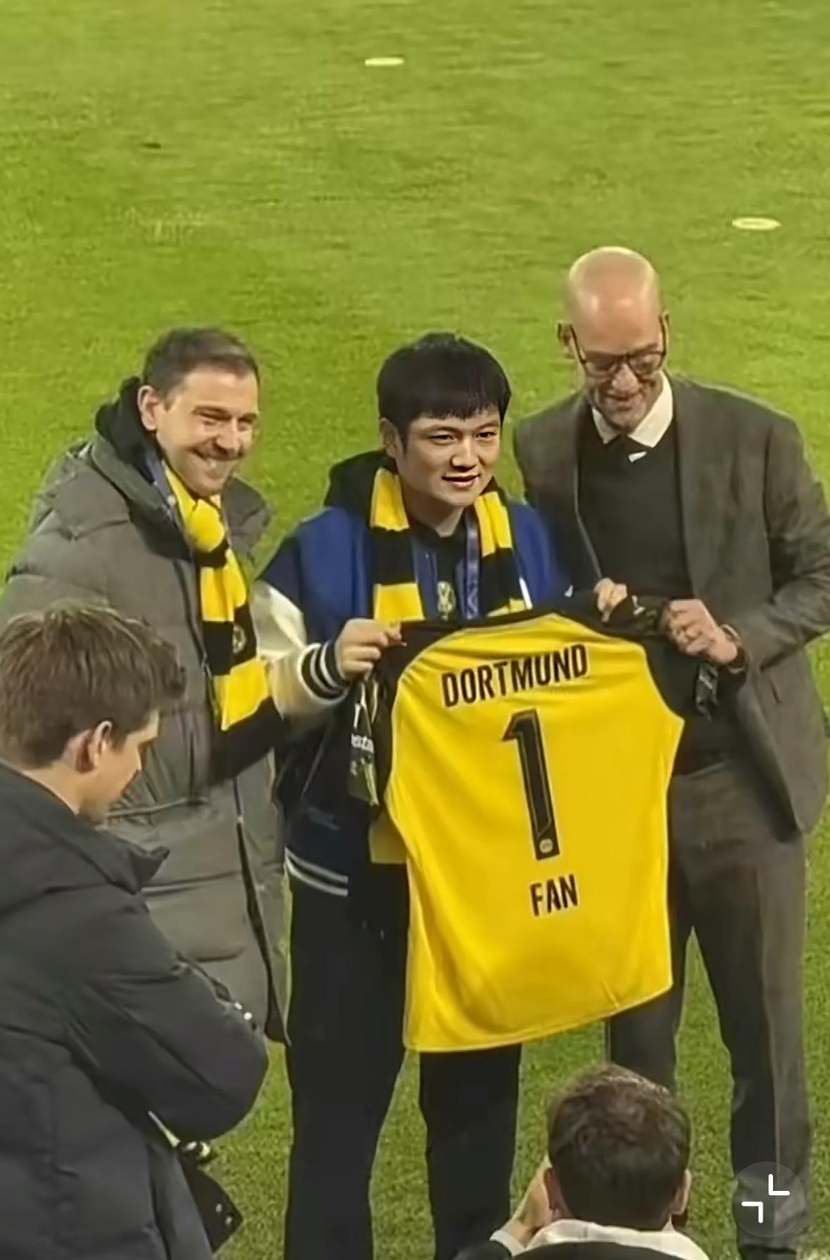 排面拉满… 樊振东获赠1号球衣… 1月29日,欧冠之夜,樊振东在多特主场观看比赛赛后,获赠多特蒙德1号球衣! 虽然没有成为开球嘉宾,但是获赠主队球衣,这排面已经给满了。樊振东喜欢踢足球,看足球比赛,欧洲人都知道了。 欧冠之夜,樊振东在威斯特法伦球场获赠多特蒙德1号球衣,上面印着FAN,这排面真是给足了,不愧是奥运冠军的排面。 多特蒙德:不好,有一位蓝色选手闯入黄色海洋,哦原来是奥运冠军樊振东,那算了,放行吧[笑哭] 一次暖心的双向奔赴与致敬。 樊振东获赠1号球衣