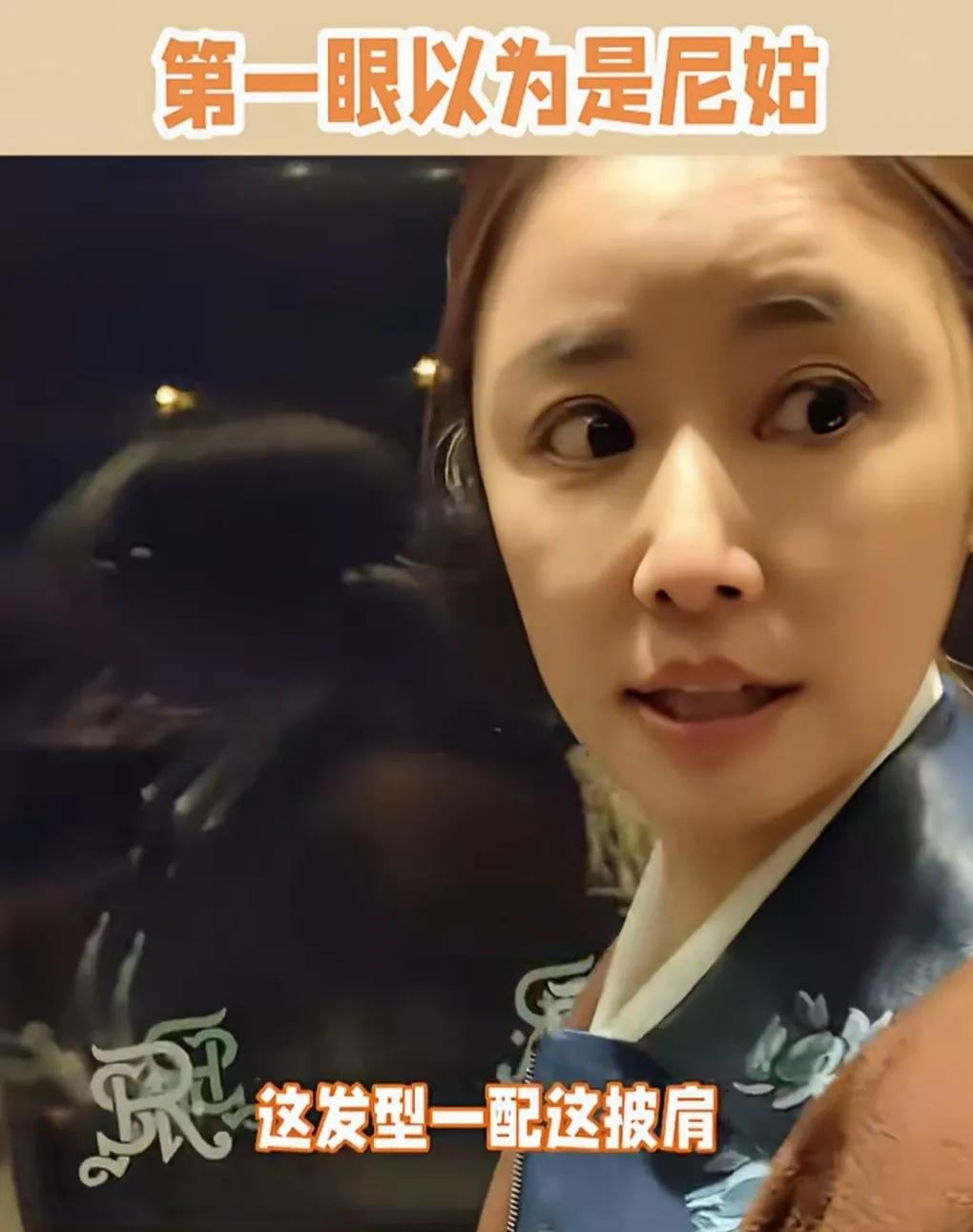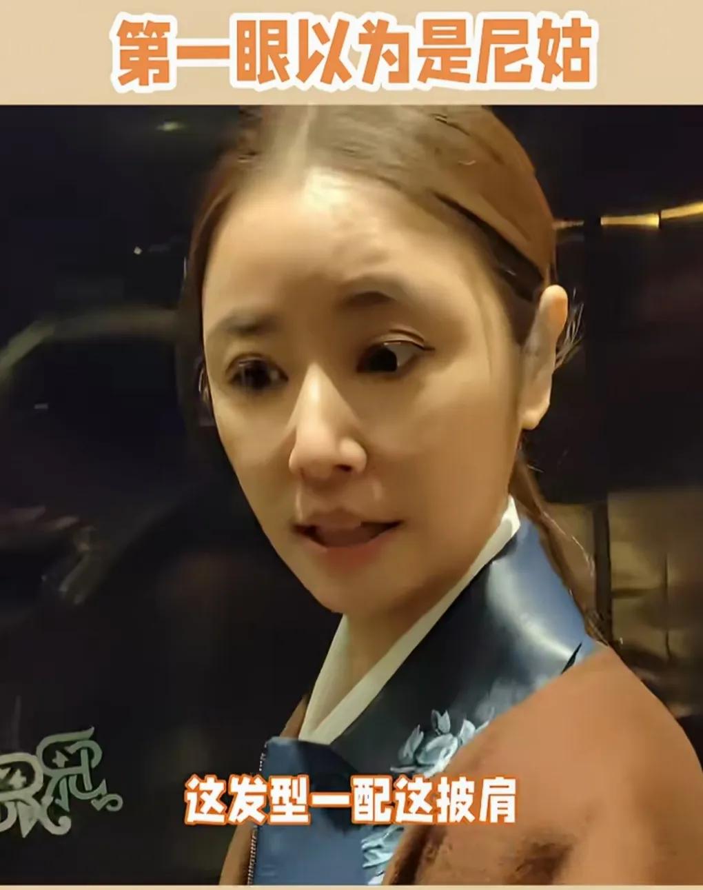 这发型服装打扮的, 远看以为是一尼姑, 近看才发现是林心如。 她这次的穿搭让观众有点失望。