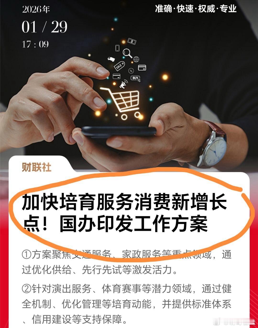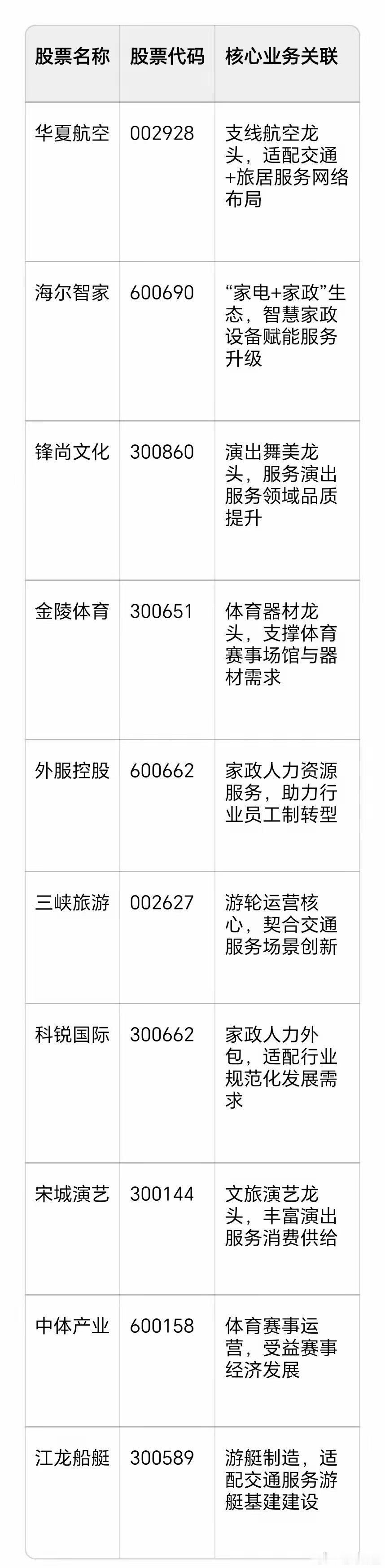 影响明天A股板块领涨的方向和题材股今日国办印发《加快培育服务消费新增长点工作方案》,核心聚焦两大板块:一是交通、家政等重点领域,以优化供给、先行先试、创新场景等激发活力;二是演出、体育赛事等潜力领域,通过健全激励机制、优化安全管理、培育优质品牌等培育动能,同时以标准体系、信用建设等强化支持保障,助力服务消费提质扩容,释放万亿级市场潜力。10个核心概念股