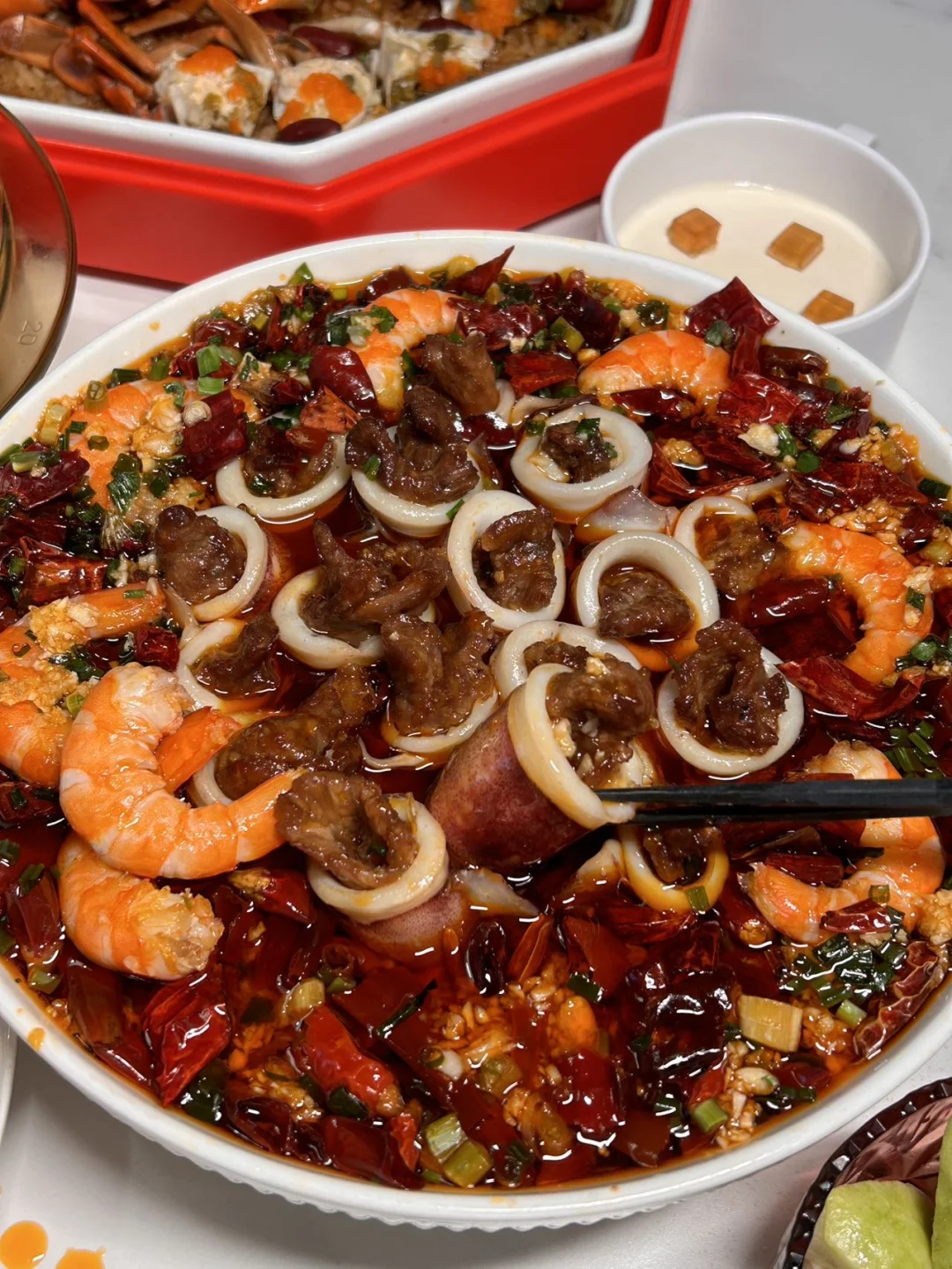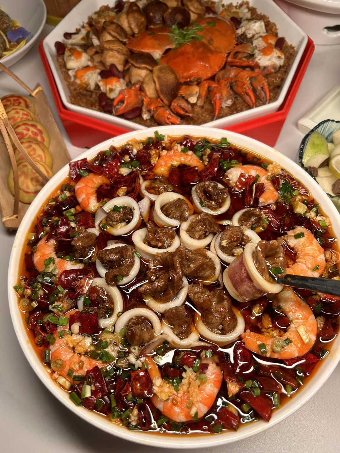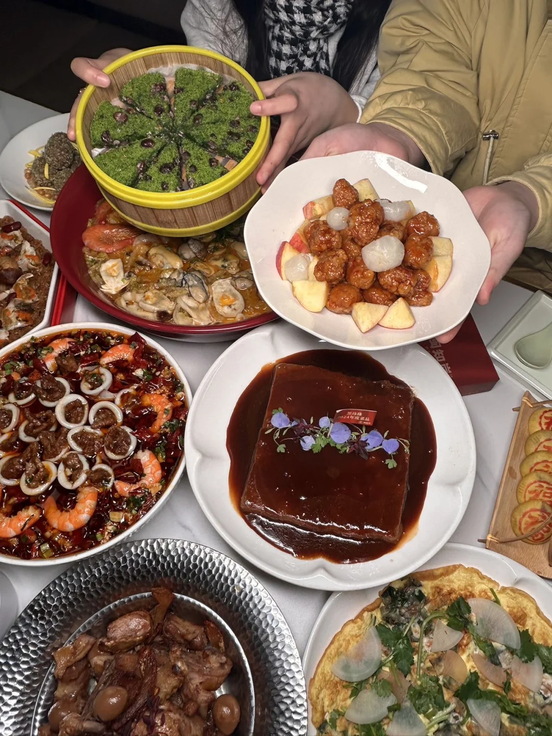 明档制作过程全程可见,食材新鲜度肉眼可见,拒绝预制菜这点真的太加分了。闽南葱头油肉汁焗荔浦芋头也很绝,芋头绵密,吸满咸鲜的肉汁,一口下去超满足。