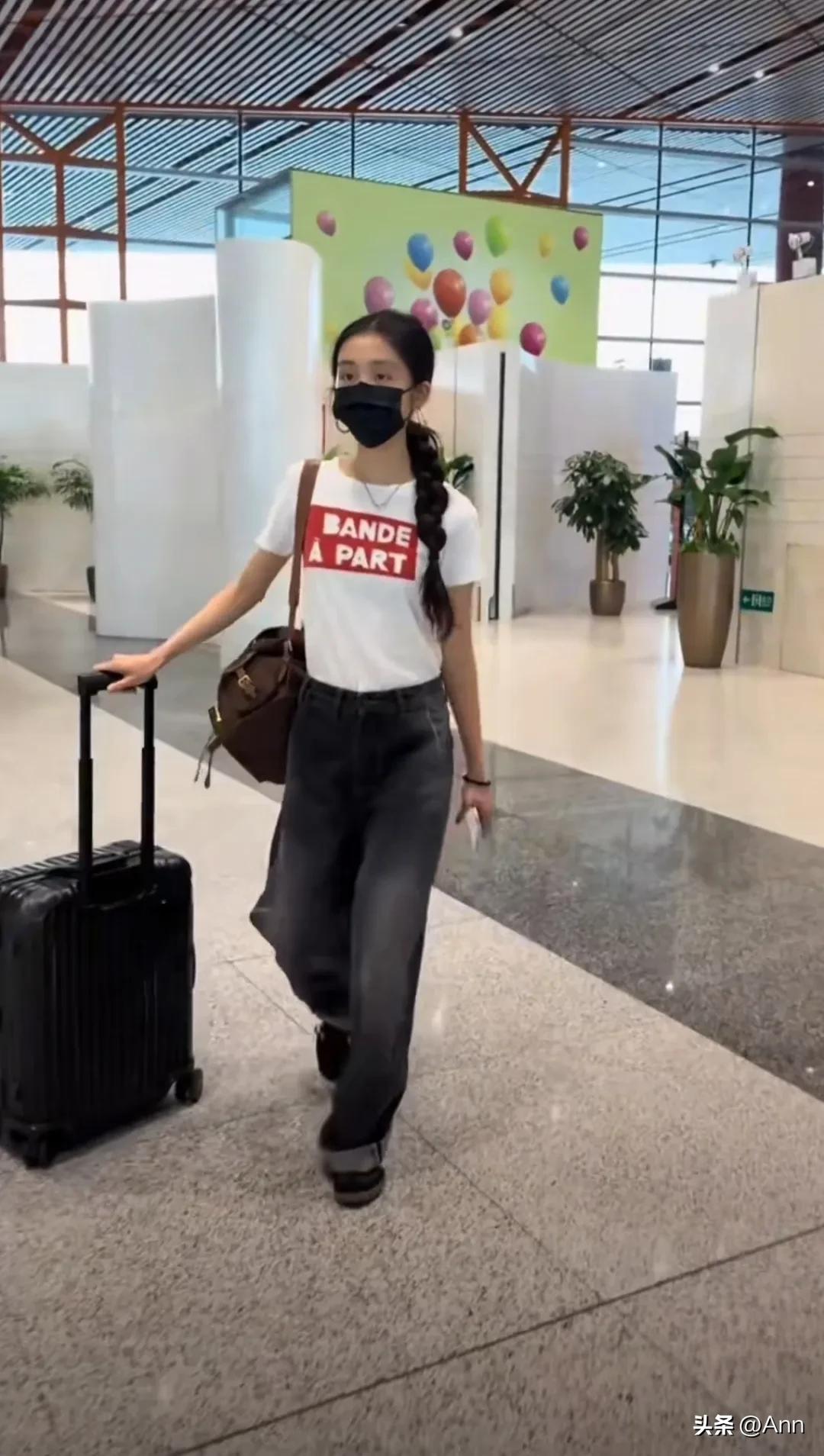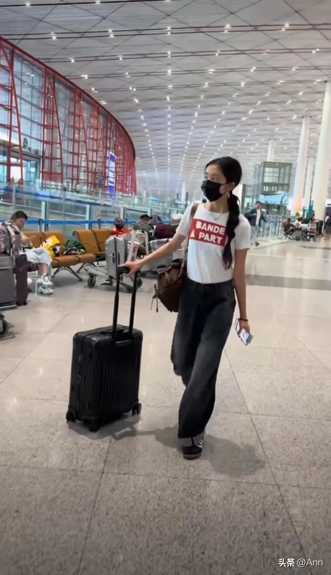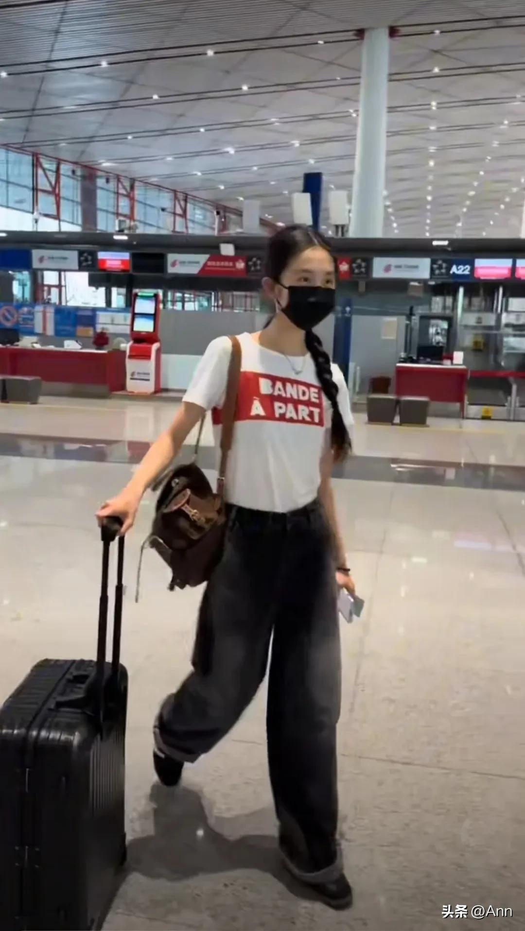 网友在机场偶遇黄多多,画面里的她独自拖着行李箱,步履间满是利落劲儿,连走路都带着