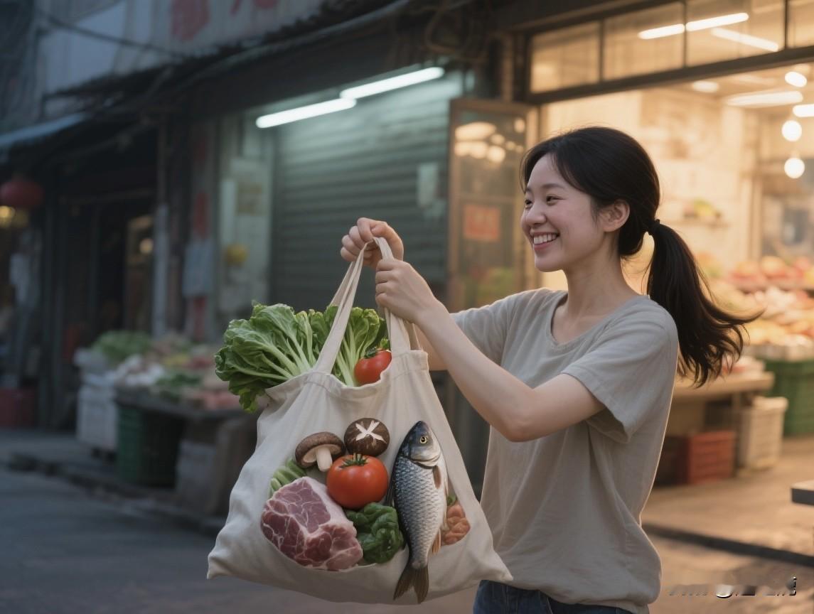先到蔬菜区,当季的上海青新鲜水灵,5元买了一大把,够炒两顿;看到架上的番茄饱满通红,挑了4个,花了6元,既能做番茄炒蛋,又能煮番茄蛋汤。转到菌菇摊,香菇性价比高,8元称了一小袋,用来炖肉或炒青菜都香。