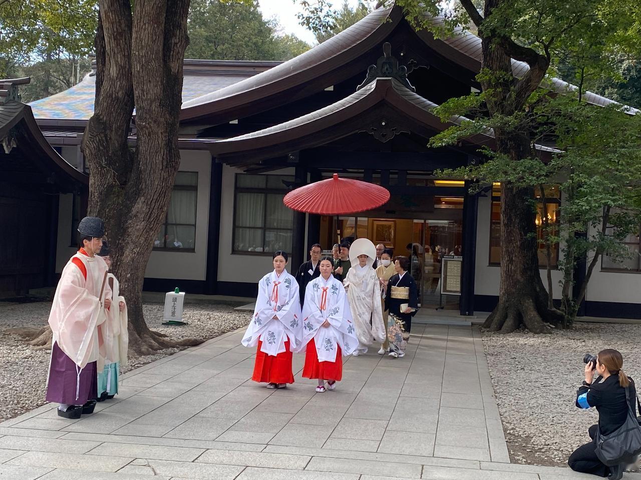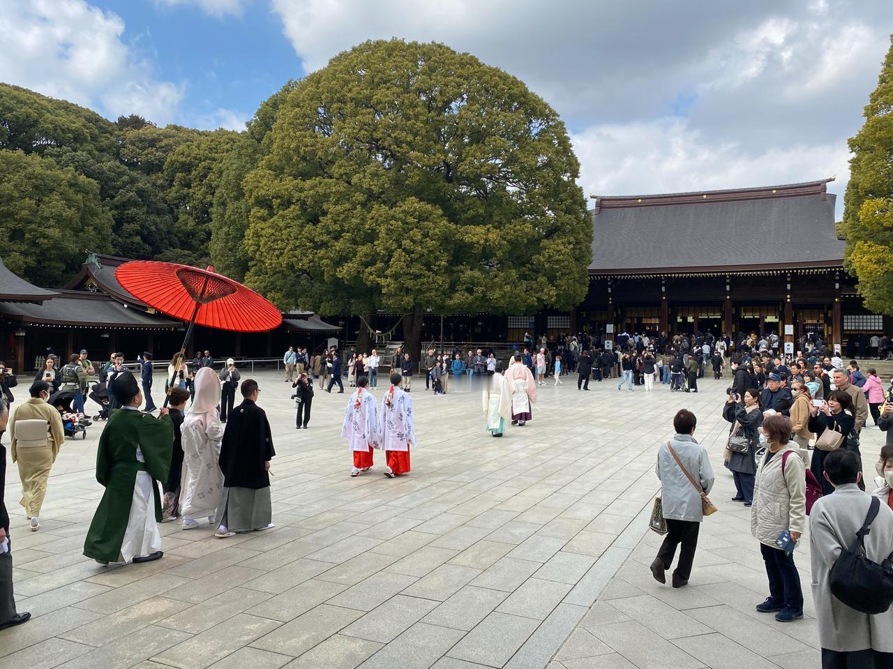 今天正好有一家日本的新人举行婚礼,女方应该是请了法事,估计是个不小的人家,新娘的父亲穿了非常传统的西式礼服[小鼓掌]所有的游客都停了下来欣赏这一真正的日式婚礼[撒花][赞]