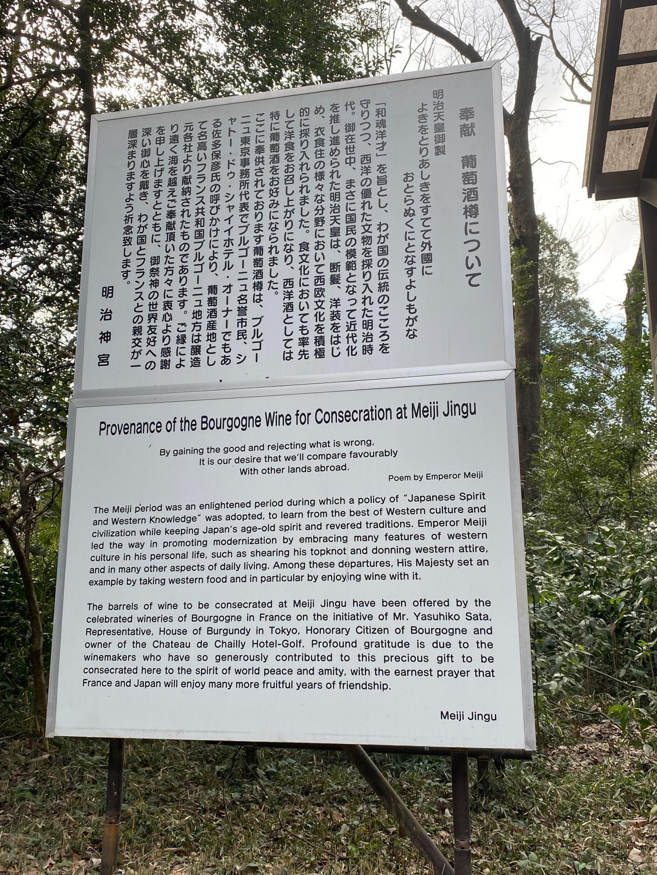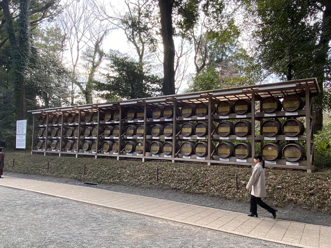 明治神宫最令人印象深刻是一排来自法国勃垦地地区的葡萄酒桶,桶上的铭牌擦得铮亮[撒花]很能体会日本明治时代从文化和饮食等细节开始“脱亚入欧”的决心[赞]对面则是日本各地进献的日本酒[呲牙]