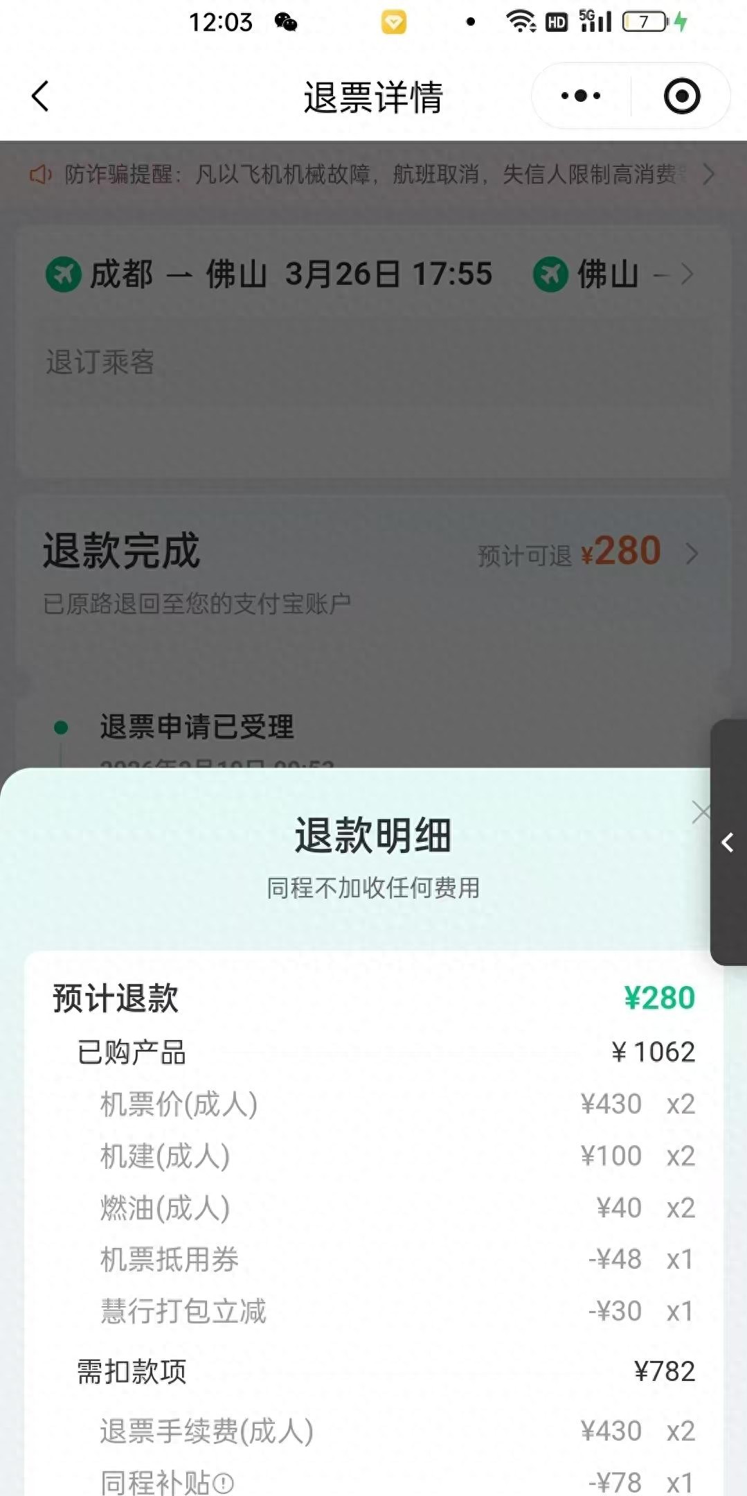 还有一个容易被忽略的坑,就是未登机费。很多人以为没赶上飞机,大不了损失机票钱,其实不然,如果临时不登机又不告知航司,航司会扣除未登机费,这笔钱从退款里扣。