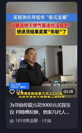 浙江,一男子奶奶临终前,悄悄告诉他,家里宅基地下埋着2坛子银元,少说也能值个60万。多年后,男子准备把银元挖出来卖钱,可是家里房子实在太大,他也不知道从何下手,之后,朋友给他出了个主意,但就是这个主意给他带来新的烦恼。 今年2月初,宁波的寒气能把骨头缝都冻透。一台花了整整九千余元买来的白色电子探地仪,被肖师傅死死按在小区那根锈迹斑斑的裸露燃气铁管上来回扫。记者们围在旁边一声不吭,肖师傅攥着机器的手越来越紧,嘴角往下扯出一道硬缝。 那根就戳在眼皮子底下的真实金属管道,这台号称能穿透地层、深探数米的"神器",愣是没发出任何响动。屏幕上死寂一片,连个红点都没蹦出来。 二十年的发财梦,就这么烂成了灰。这个局,从二十多年前就埋下了要说这事的根,得往二十多年前扒。那时候,肖师傅的奶奶病危,临咽气前死死拽住年幼的孙子,用颤抖的手指在他脑子里刻下了一张"藏宝图"老宅子地基偏角下面,埋着两坛子铜钱,按现在的行情,少说值六十万。 这话就这么钉在肖师傅心里了。但肖师傅这人,骨子里是个实在人。在宁波石油机械圈摸爬滚打了二十年,每天被机器轰鸣声震着耳朵,早就把那些虚无缥缈的念头压了下去。老宅子早拆了,盖了两百多平的新房,这事本来就该翻篇。 但人就是逃不开财富的诱惑。徒弟靠倒腾民国老铜钱发了财,酒桌上有人三番五次提点民国铜圆价格狂飙,更要命的是之前老宅翻地的时候,挖机真的带出来过一批陈年铜钱,连街坊邻居都跑来哄抢。这些事情叠在一起,把那根沉睡的底弦彻底拨响了。 问题是,老宅地基上已经压着一栋两百多平的大房子。你总不能为了赌这个把房子拆了吧?就在肖师傅脑子里火烧火燎的时候,有人给他递来了一根"救命稻草"网上有种高科技探地仪,不用动土,隔着地面就能定位地下金属,精准无误。 九千块买来的,是一场精心设计的骗局电商平台上,这台机器的标价接近万元。但在"六十万铜钱"这个数字面前,九千块算什么?肖师傅自己都想明白了:"花九千换六十万,这买卖稳赚不赔。"为了保险,他甚至想着要留一手通过正规平台走账,万一出问题还有个说法。 但卖家的操作,透着一股子阴冷的老练。不走正规平台?没用强硬手段拒绝你,而是搬出了一套让人头皮发麻的说辞:宁波北仑区属于"地下探测管控红区",政府特别封禁,要想合法使用这类设备,必须提供官方授权证明,还得实名登记。 这一套"官方背书"的话术,直接把肖师傅逼进了死角既然是"敏感区域",走正规渠道反而成了麻烦,只能私下交易。 于是,肖师傅加了微信,进了这片黑暗森林。先打五百块定金锁单。卖家咬死规则:收到货若探测落空,原机退回并退款,但尾款必须在收货当天结清。1月9日,机器到货,肖师傅连夜验货,随即把剩余的八千五百块全部打了过去。 铁管都探不到,这机器能探出铜钱?然后就是开头那一幕。2月初,记者陪同,肖师傅拿着这台花了九千多的"神器",对准小区里那根明晃晃的裸露铁质燃气管来回扫。 没有任何反应。一根就在眼前、肉眼可见的金属管道,这台机器愣是探不到。屏幕上的死寂,比任何语言都更有力地宣判了这场骗局的本质。 肖师傅嘴角那道硬缝,是二十年执念被当场戳穿的表情。奶奶临终的话,他始终相信不是骗人的。但这台机器,连铁管都看不见,谈什么探铜钱? 年初八,人间蒸发肖师傅当然不肯认栽,拿着证据去找卖家理论。对方的应对同样老练以"过节结账"为由,把退款的事一拖再拖,说要等到正月初八之后才能处理。 正月初八一过,对方的微信、电话、店铺,全部消失得干干净净,像从没存在过一样。 九千多块,就这么没了。 六十万的铜钱梦,死得比那根冰冷的铁管还要彻底。说实话,这个局设计得相当毒。它不是靠蛮力骗你,而是精准地找到了你心里那个最烫的点二十年的执念、奶奶临终的嘱托、亲眼见过的钱出土。这些真实存在的记忆,成了骗局最好的燃料。 石油机械区的轰鸣声还在响。比起那个永远不会兑现的六十万,肖师傅这辈子用力气实打实挣下的每一分钱,才是真正硌得住心的东西。
