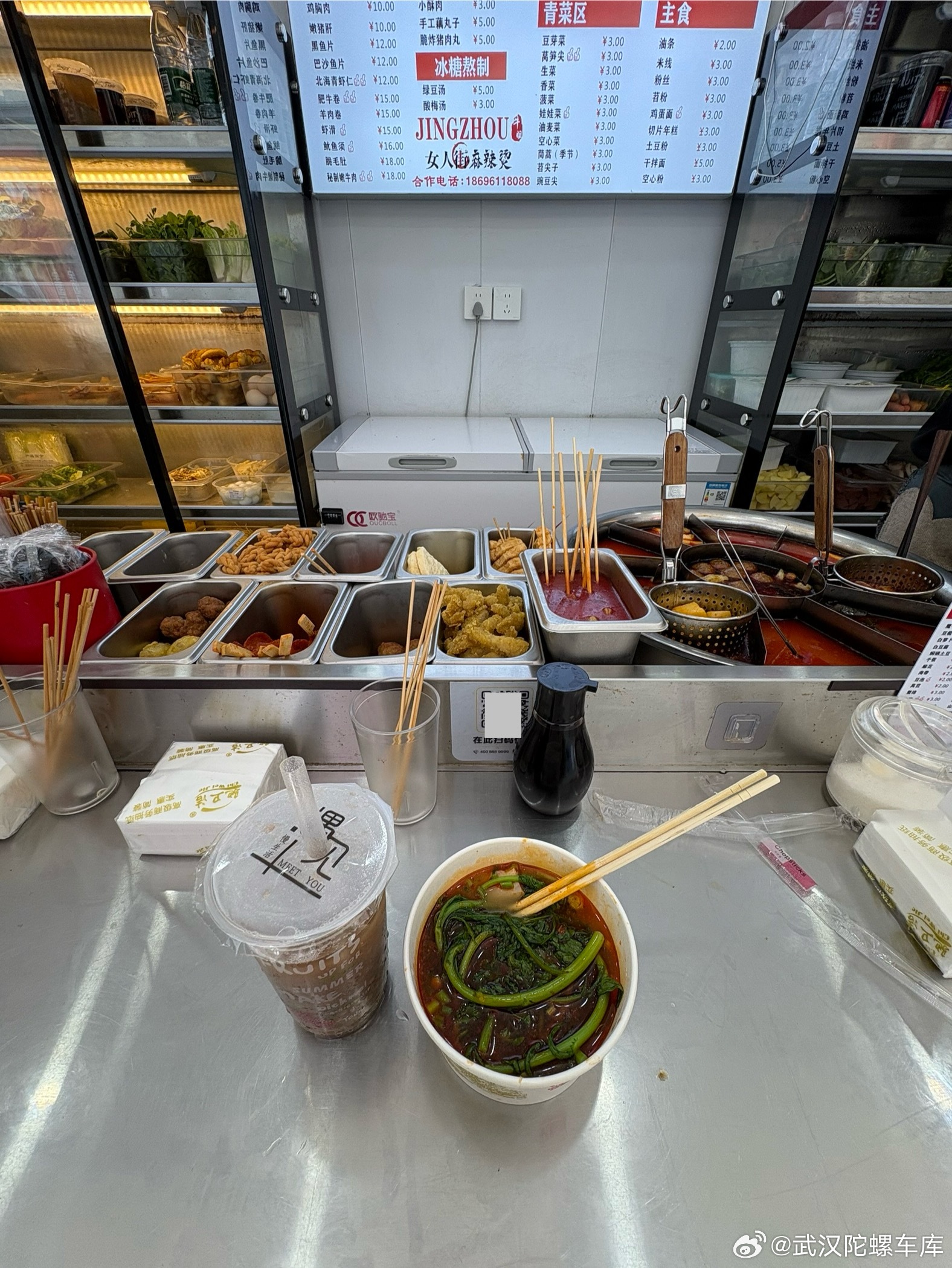 别的吃的不敢说但是我绝对是女人街串串老吃家了来老胡他姐刚开的店里尝一下有一说一 确实味道不错而且食材真的新鲜店里还有个阿姨临走也是这么评价而且很多在武汉的店没有西红柿这家跟荆州一样是有的绿豆沙也是现熬出沙的店铺位置在靠东风高架2号门这边提老胡的名字好使武汉·万达广场(经开店)