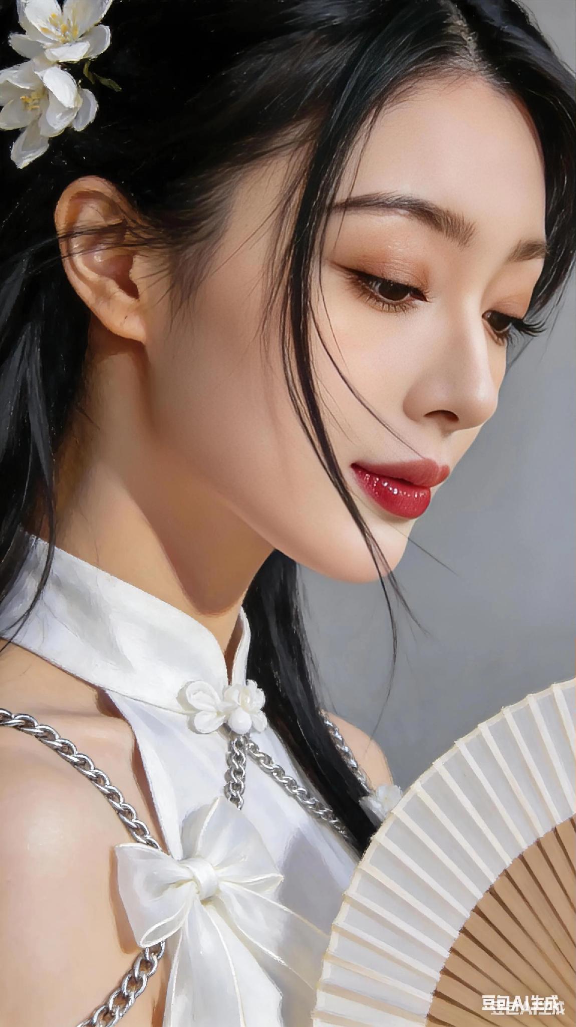 她的侧颜如同一幅优美的水墨画,线条流畅而优雅,散发出独特的魅力。