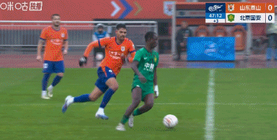 北京国安北京国安中超联赛 马德鲁加铲到孔特,麦麦提江未出牌