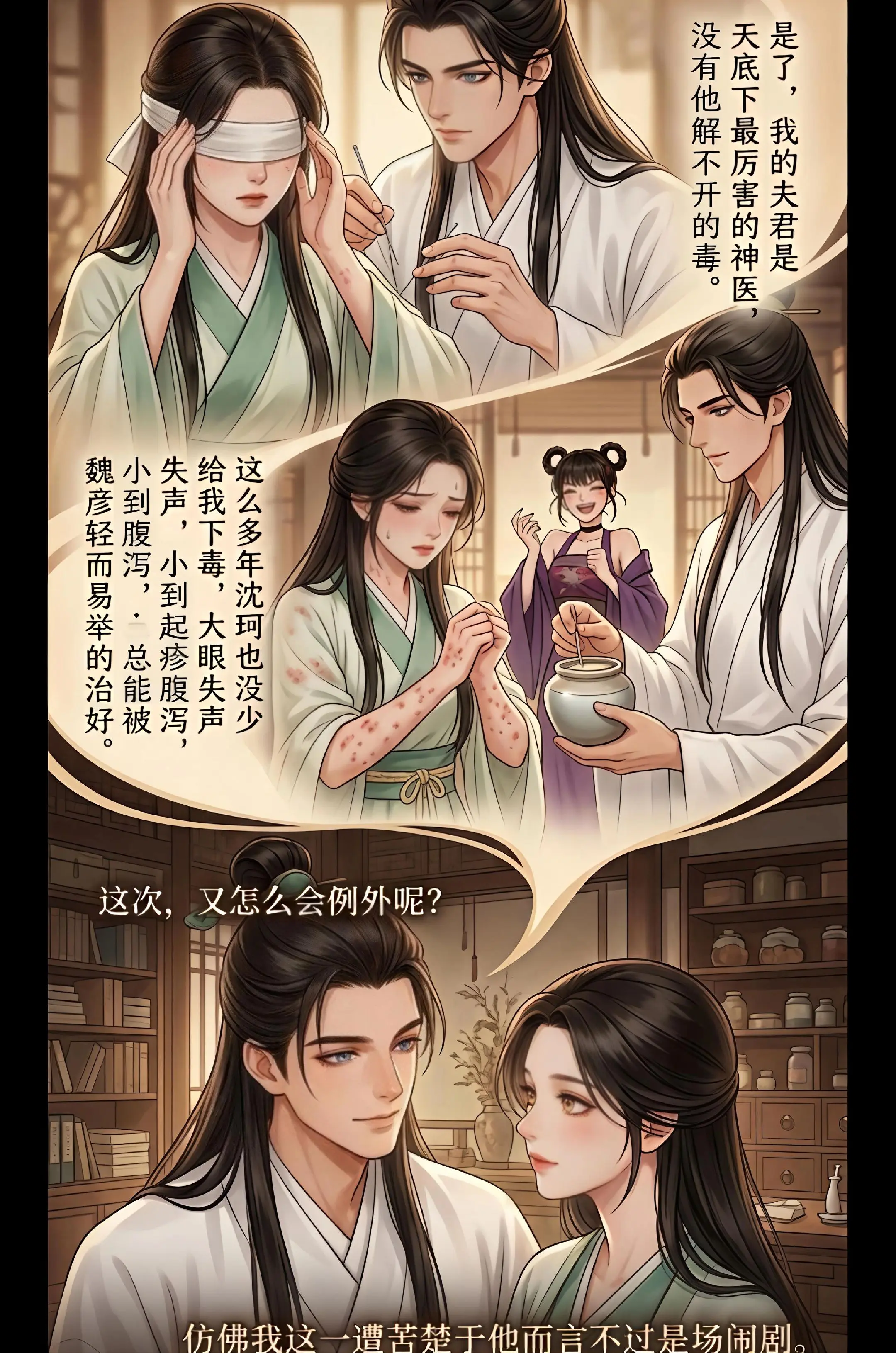 【丈夫医神】我的夫君是神医,他有个青梅竹马的师妹,很会制毒,他们两人一毒一解,热闹了十几年,直到我中了剧毒后,我才得知他们两人曾经有过婚约……