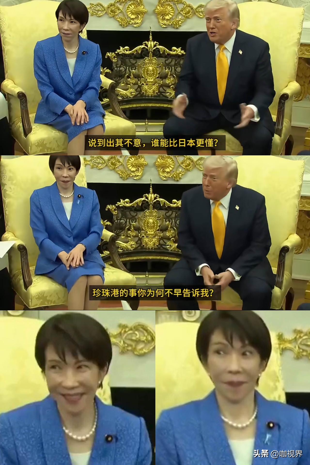 高市早苗在白宫挂不住脸!日本记者提问特朗普“为啥在攻击伊朗前未提前通知自己的盟友?”,特朗普说“就像日本当年偷袭珍珠港……要的就是出其不意……日本更懂突袭”。说毕,旁边的高市睁大眼晴“大变脸”,想找个地缝钻进去,场面一度尴尬极了!