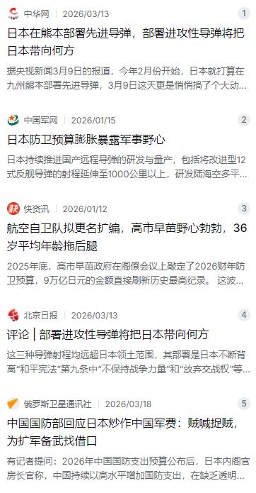 奉劝所有中国人,大家一定要做好心理准备,央视已经指出了关键问题,现在日本做的,不是闹着玩的小动作,而是非常明显的大动作趋势。一觉醒来,日本的导弹杵在咱们家门口了。 麻烦看官老爷们右上角点击一下“关注”,既方便您进行讨论和分享,又能给您带来不一样的参与感,感谢您的支持! 日本这回不是以前那种小打小闹的试探了,而是直接把能打1000公里的改进型12式反舰导弹,趁着夜里悄悄运进了九州熊本的军事基地。从地图上看,这个位置离咱们上海也就800多公里,这意味着什么?意味着咱们整个东部沿海的繁华城市、重要港口,还有那些繁忙的海上航道,都直接暴露在了人家的眼皮子底下。这哪是什么自卫,这分明就是把刀子架在了咱家门口。 最让人气愤的是日本政府那副偷偷摸摸的做派。据央视和日本共同社的报道,这些导弹发射装置是3月7号从静冈县起运的,8号夜里抵达熊本,9号凌晨就趁大家还在睡梦中的时候,直接拉进了健军驻屯地。整个过程跟做贼似的,连当地政府和老百姓都被蒙在鼓里。熊本县的知事和市长事后才知道,气得直说对防卫省的信赖感大打折扣,老百姓更是大半夜举着标语抗议,喊着“别把熊本变成战场”。 这还不算完,日本这次的军事扩张是成体系的,步子迈得特别大。你看2026财年的防卫预算,直接冲破了9万亿日元的大关,这已经是连续14年增长了。这笔钱花在哪?主要就是买进攻性的武器。除了咱们刚说的12式改进型导弹,他们还急着从美国买“战斧”巡航导弹,射程超过1600公里,甚至把原定几年后才部署的导弹计划硬生生提前了一年。 更值得警惕的是,现在的日本政坛,像高市早苗这样的右翼政客是铁了心要在军事上松绑。她们不仅想废除武器出口的限制,好让日本的装备能卖到菲律宾这些地方,还在积极布局太空和无人作战领域。听说他们要把航空自卫队改成“航空宇宙自卫队”,还要组建“宇宙作战集团”。说得好听是监控太空碎片,实际上就是在抢占未来战争的制高点,这野心已经藏不住了。 日本之所以敢这么肆无忌惮,说白了背后还是美国在撑腰。美国为了推进自己的亚太战略,不仅把“战斧”导弹这种大杀器的技术给了日本,还拉着日本搞联合军演,对日本突破“和平宪法”的种种小动作睁一只眼闭一只眼。美国人打的算盘也很清楚,就是想把日本推到对抗中国的前线,让它当自己在西太平洋的“看门狗”。只是美国这次可能没想明白,养狗是一回事,要是哪天这狗挣脱了链子,咬到主人可就晚了。 面对这种情况,咱们国家国防部的表态非常明确,也非常硬气。发言人直接点明,日本搞这种远远超出“专守防卫”范畴的进攻性武器,就是对地区和平稳定的最大威胁。咱们可不是光嘴上说说,中国军队捍卫国家主权和领土完整的决心和能力是摆在那里的。日本右翼势力总觉得可以借着中美博弈的空档浑水摸鱼,重走军国主义的老路,但他们显然忘了,今天的中国可不是一百多年前的中国,现在的亚洲也容不得他们再胡来。 说实话,日本的这种冒险行为,不仅伤害了周边国家的感情,最后买单的恐怕还是他们自己的老百姓。把导弹部署在熊本,看起来是把防线推前了,实际上是把当地居民当成了人肉盾牌。一旦真有什么风吹草动,这些军事目标就是第一波被反制的对象。那些在寒风里举着牌子抗议的日本民众,心里其实很清楚,和平从来不是靠几枚导弹就能买来的,跟着右翼政客一条道走到黑,最后只会是死路一条。 我们奉劝所有中国人,看清现在的形势,做好心理准备。这不是什么危言耸听,而是实实在在摆在我们面前的挑战。我们爱好和平,但绝不惧怕威胁。面对家门口的蠢蠢欲动,我们除了保持高度警惕,更要坚信咱们国家的实力。历史终将证明,任何企图通过武力胁迫来遏制中国发展的图谋,最终都只会是竹篮打水一场空。