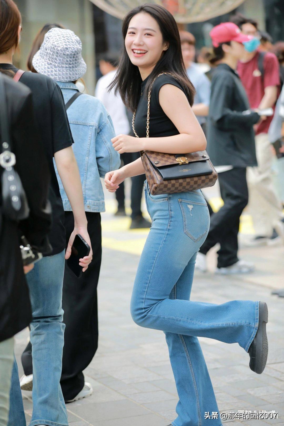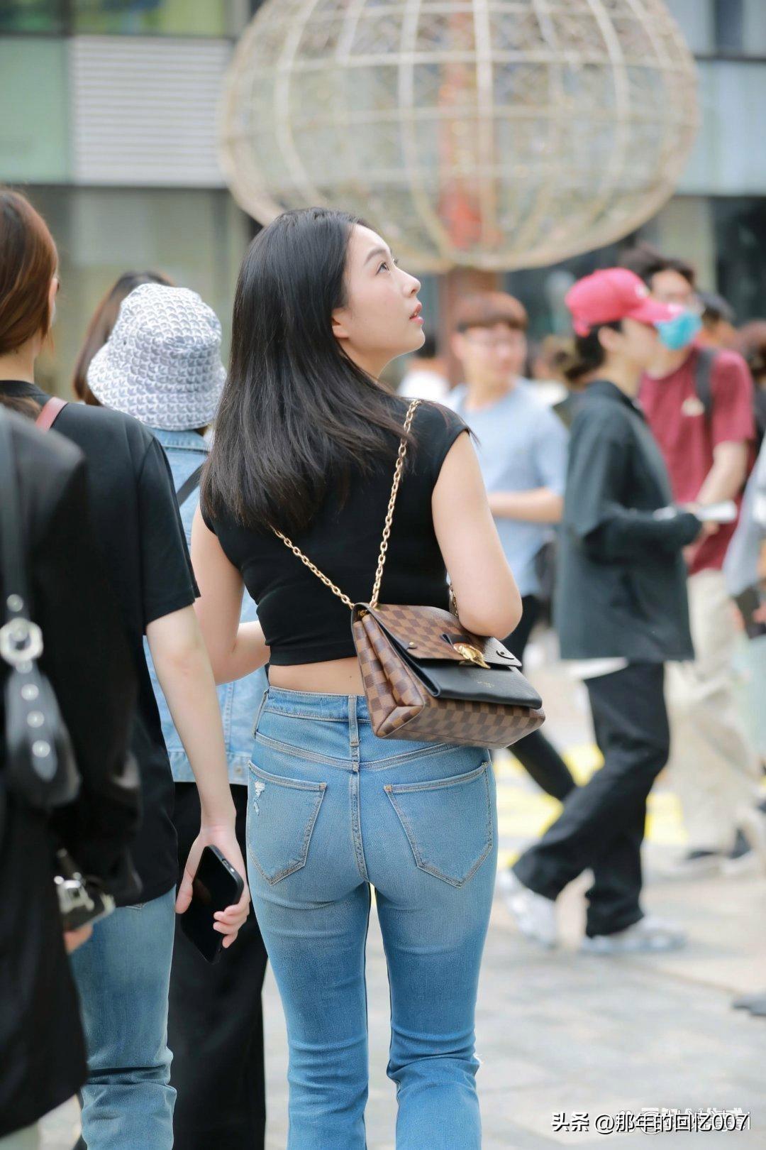 黑色短款上衣配牛仔裤,真是都市街头的时尚利器!