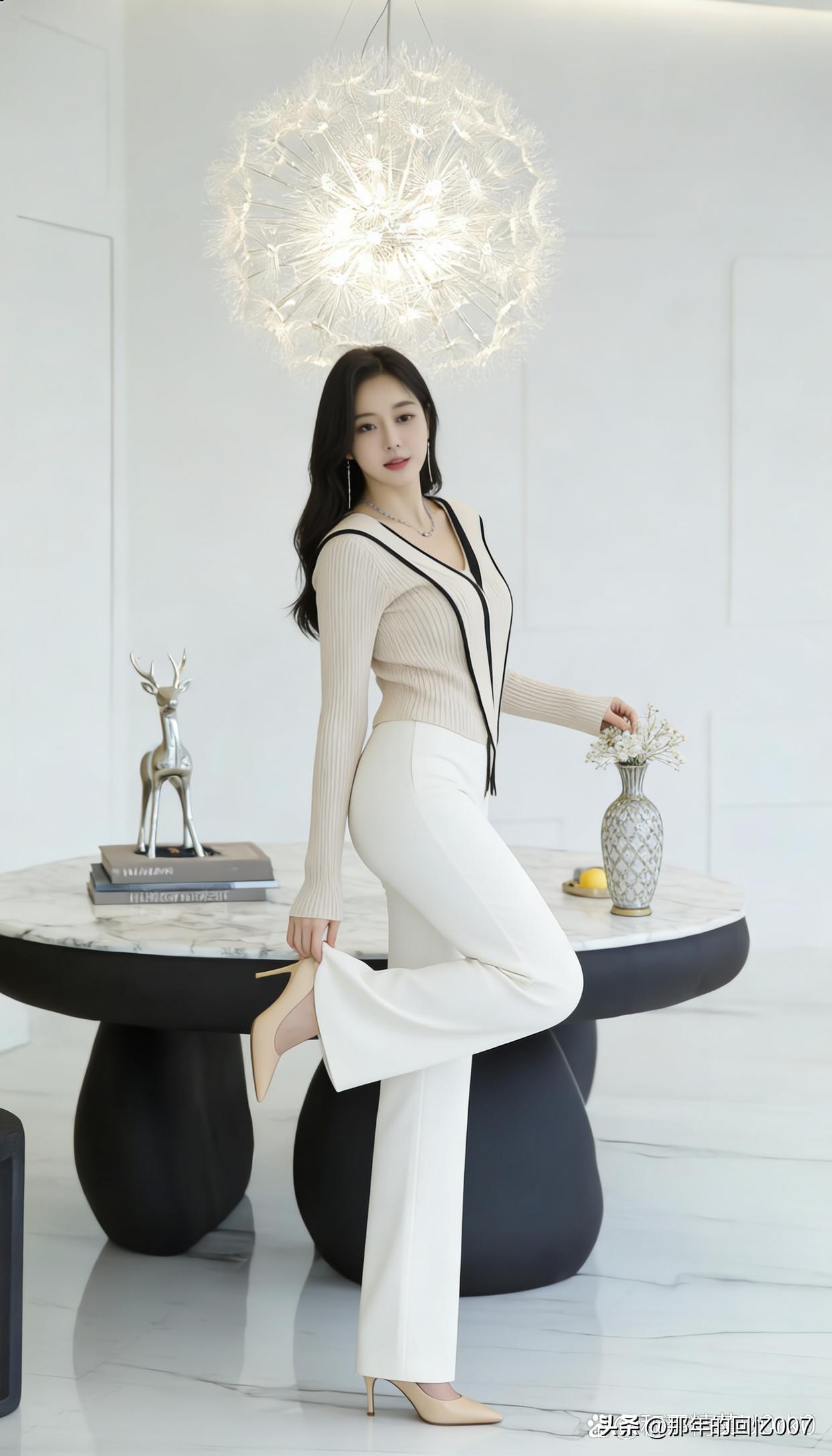 米色毛衣搭白色长裤,这组合简直是优雅时尚的标配!