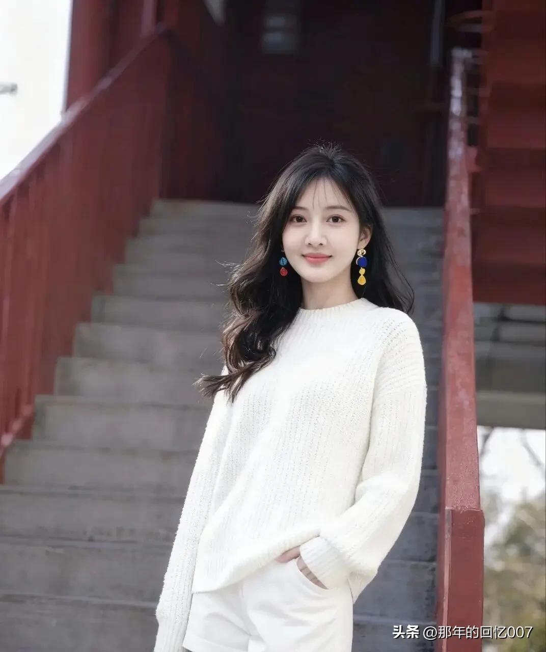 想象一下,一个穿白色毛衣的女孩坐在台阶上,那画面简直太有氛围感了。白色毛衣柔软又温暖,衬得女孩皮肤愈发白皙。她静静地坐在台阶上,可能在发呆,也可能在思考着什么。