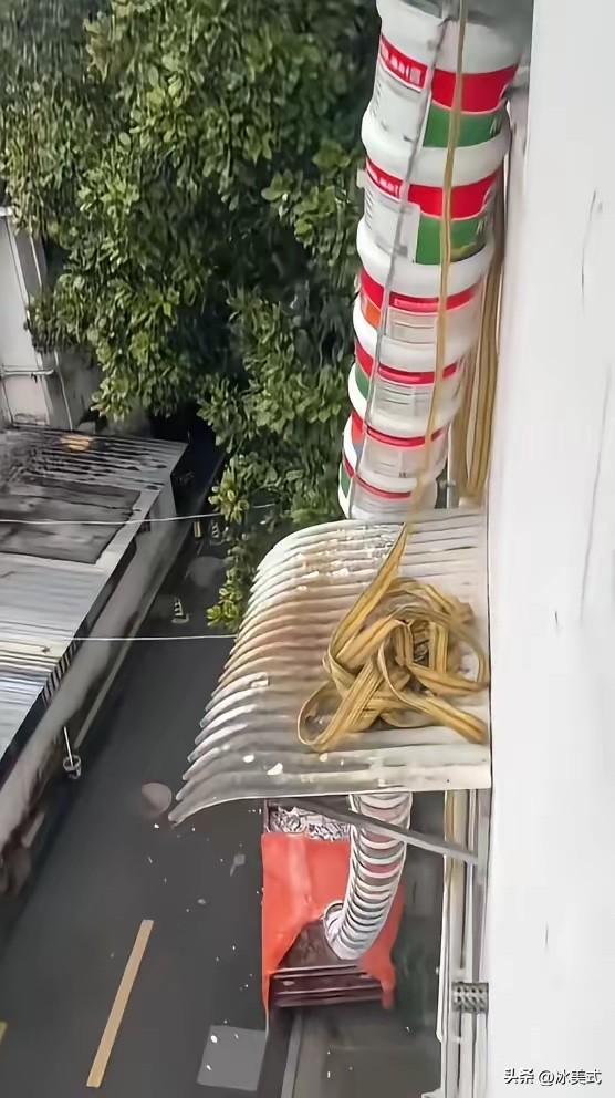 第二天一开工,王磊就找了根粗麻绳,又去废品站淘了36个一样大小的塑料桶,加上家里的那个,正好37个——六层楼,每层楼梯拐角用6个,最后一层多放1个兜底。他把桶底钻了洞,用麻绳串起来,每个桶之间留半米间距,再用铁丝固定在楼梯扶手外侧,从六楼一直垂到一楼。