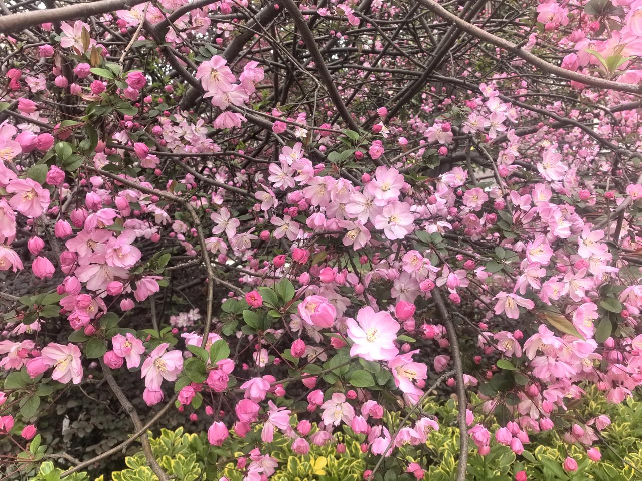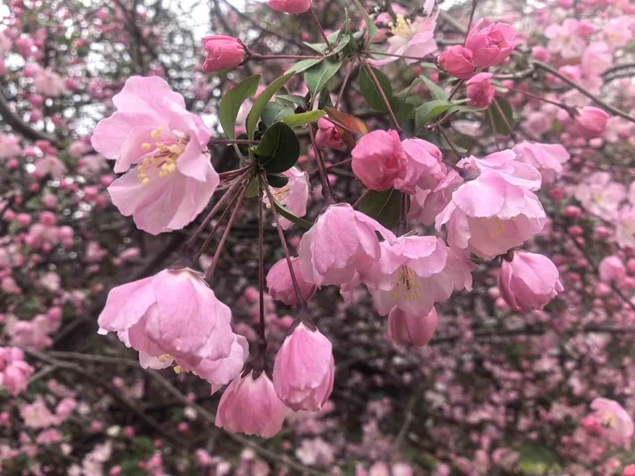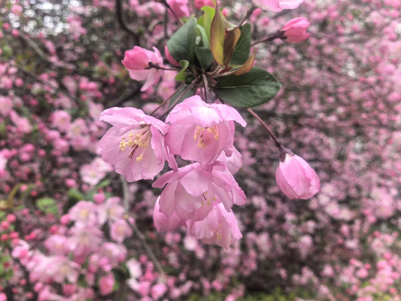靓丽的扬州海棠花 烟花三月,扬州的海棠开得正好。垂丝海棠粉白娇嫩,垂着柔细花梗,温婉动人;西府海棠清丽雅致,白里透红,自成风骨。 晨露轻沾,花瓣莹润如玉,微风一过,花影摇曳,粉瓣簌簌飘落,轻拂青砖,落入碧波。它不与桃杏争艳,只以一抹柔粉,将扬州的春色晕染得温婉含蓄,满城皆是清雅诗意,让人沉醉。