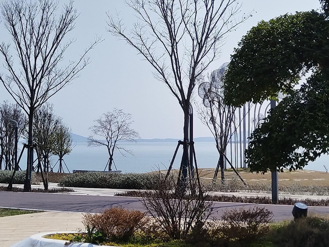 湖岸边,不见了孩童欢快地追逐嬉戏,和笑声在空气中的回荡,取而代之的是学校教室里的书声琅琅。