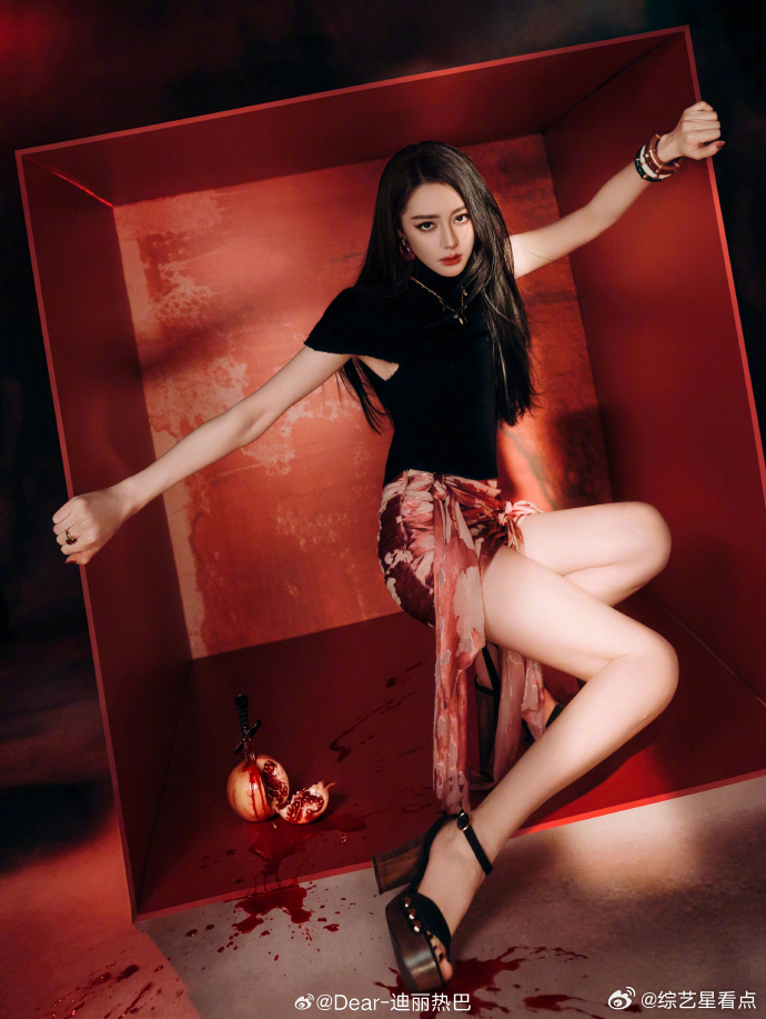 迪丽热巴刀插石榴迪丽热巴完全女鬼迪丽热巴就这个女鬼味爽!刀插石榴,像血溅出来一样,太带感了
