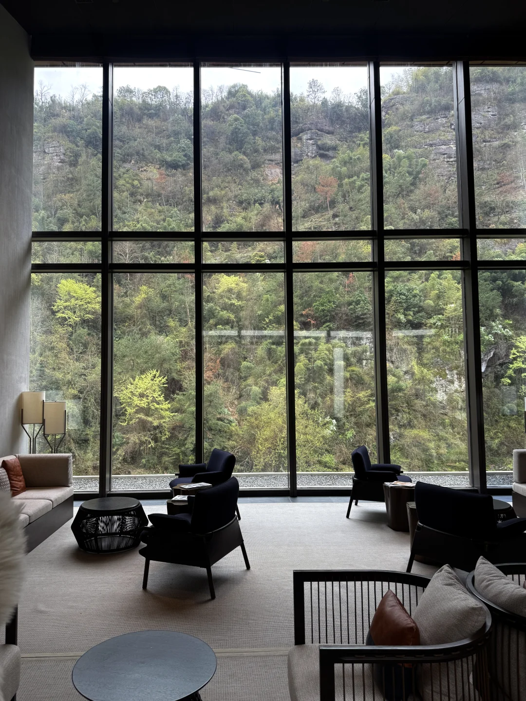 落地窗框住整片峡谷 溪声当白噪音睡眠质量直接拉满