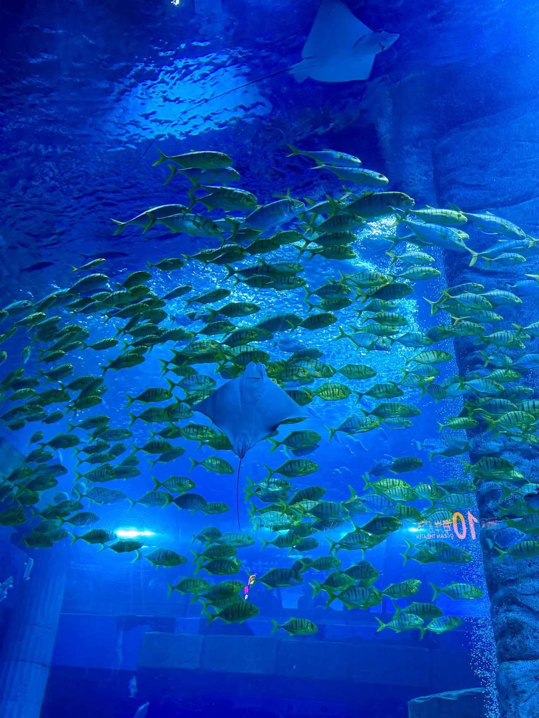 ✅一定要打卡40多米的吉尼斯纪录实景展缸,看成群结队的鱼群,海王波塞冬雕塑坐镇海底,多场演出都在这里进行(提前查好当天的表演时间表)