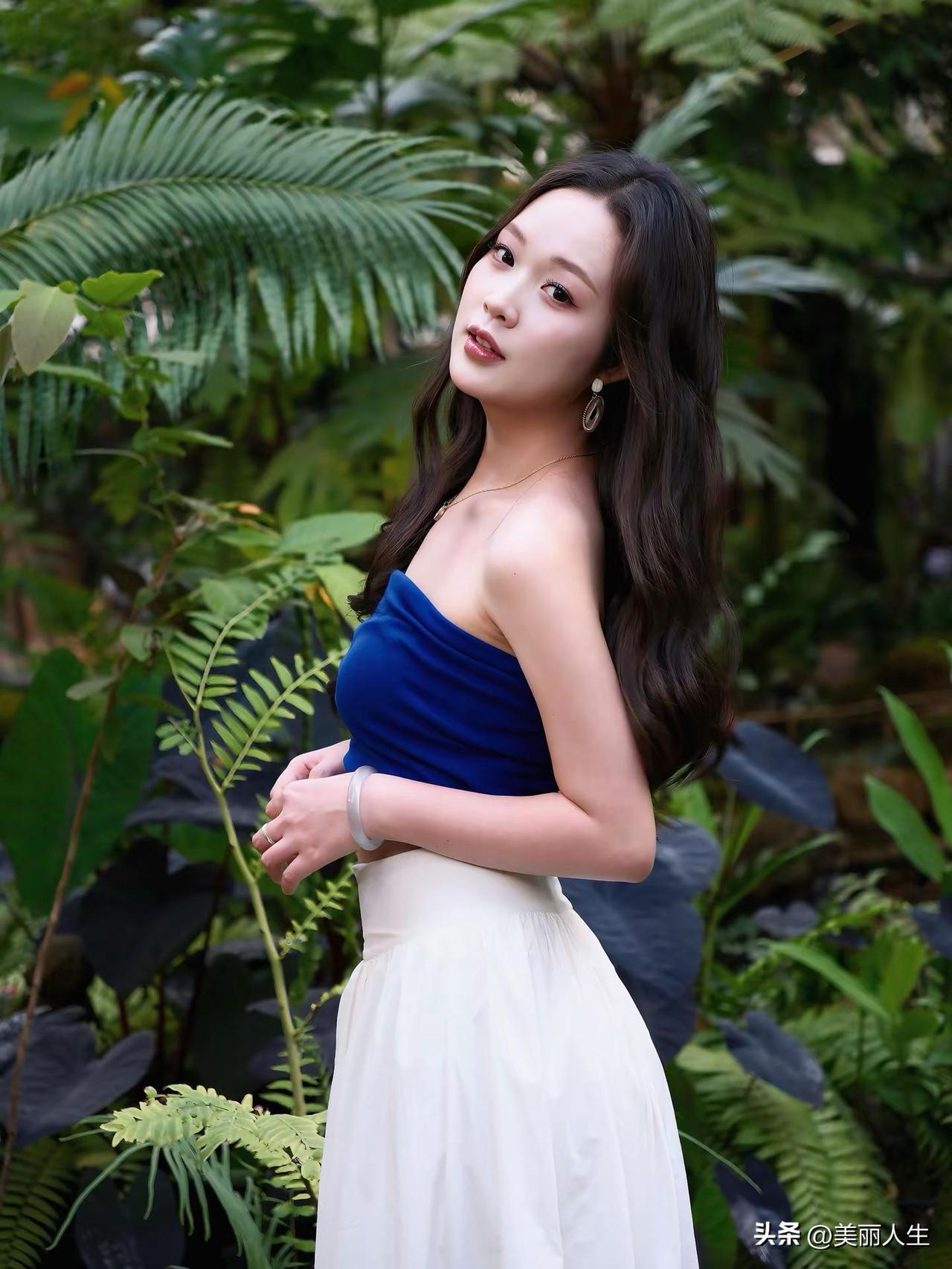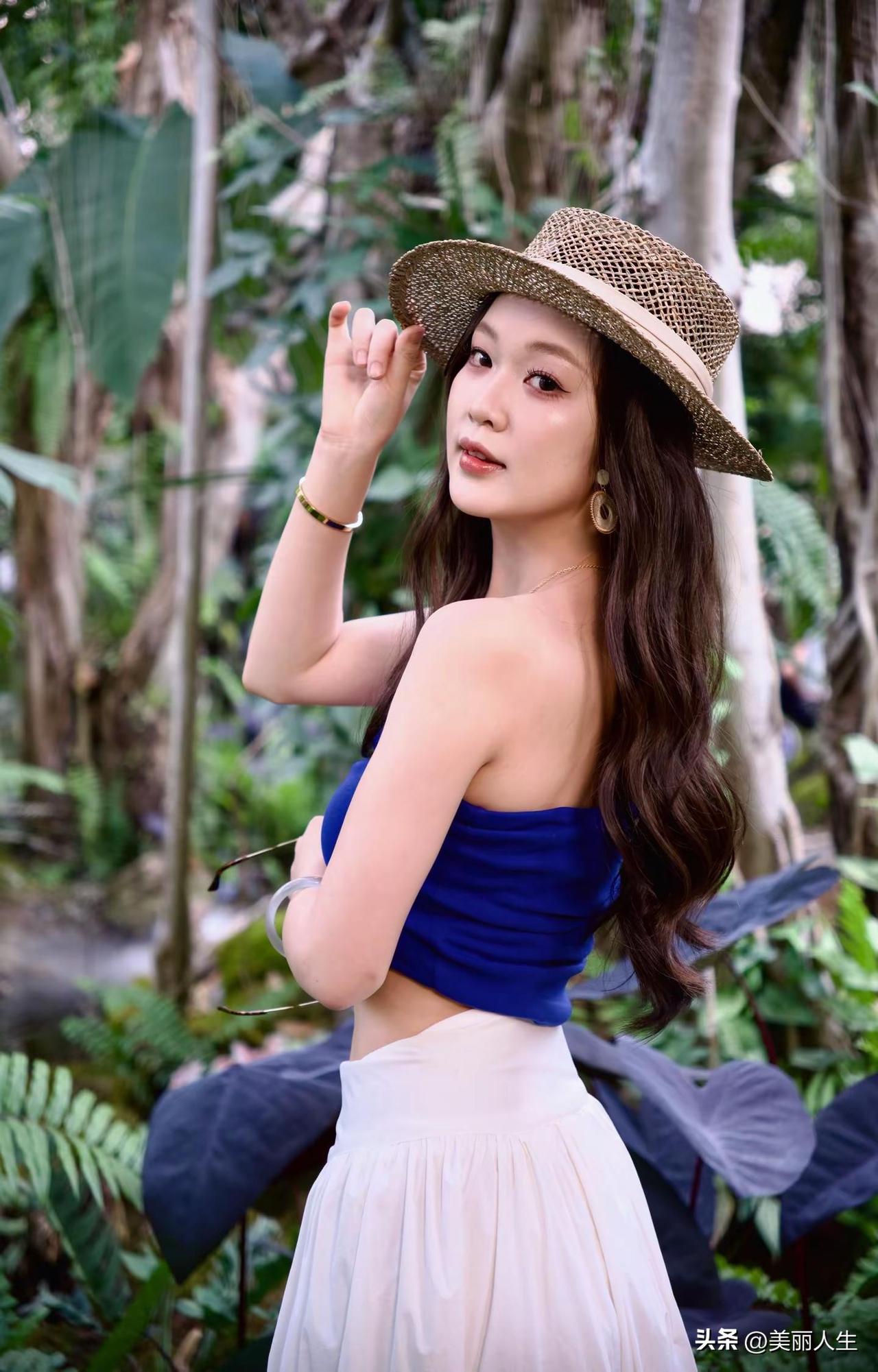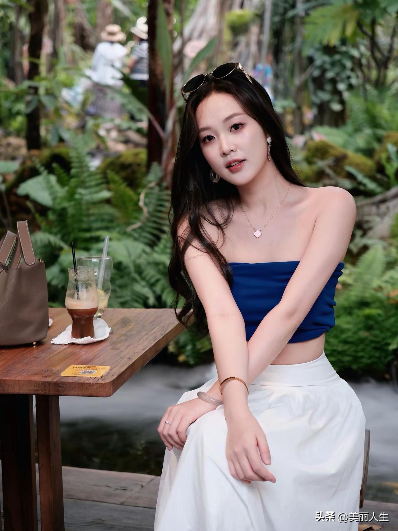 绿树掩映中,美人如画。