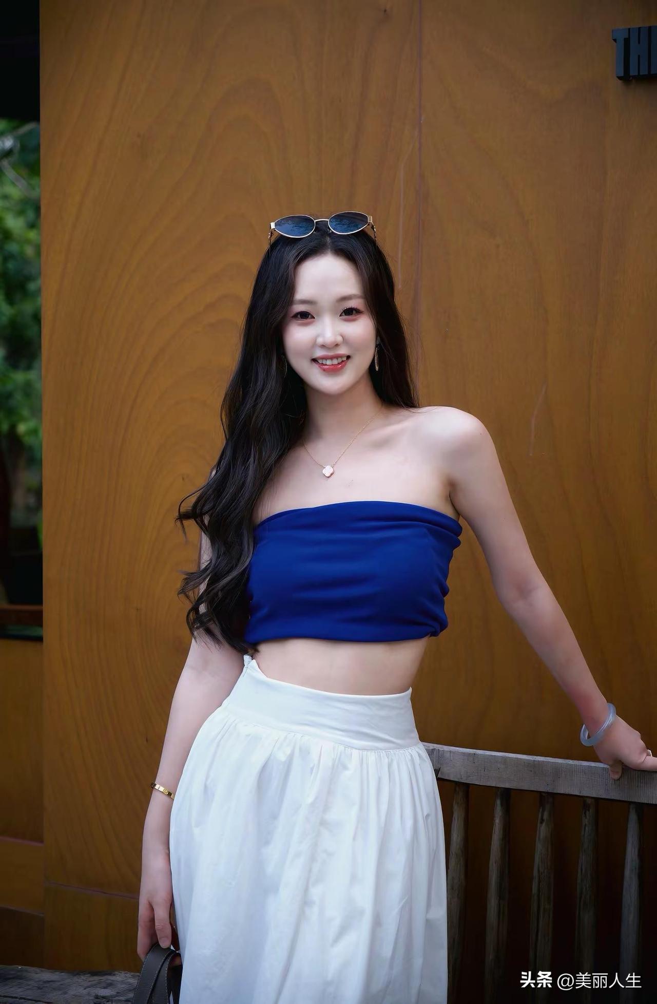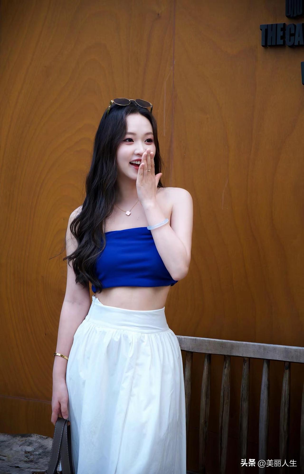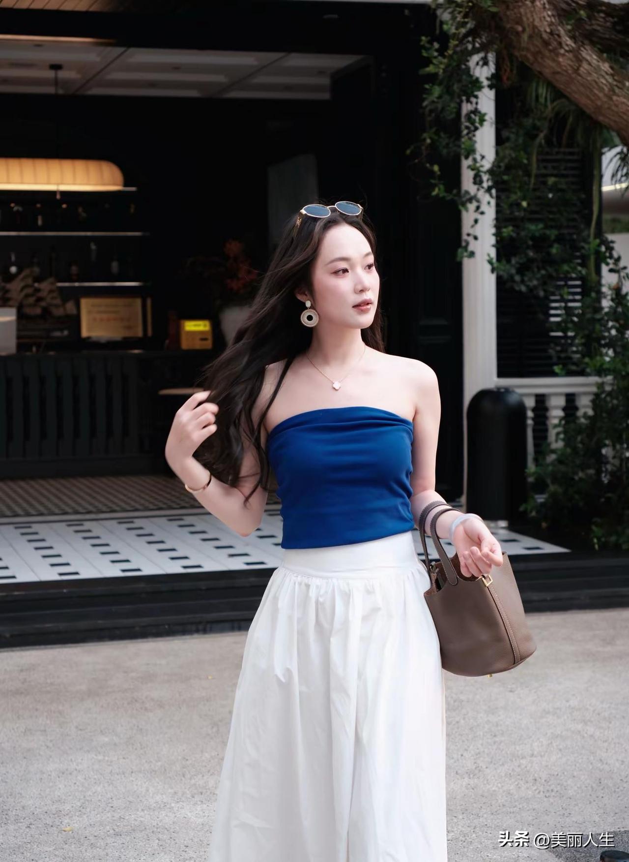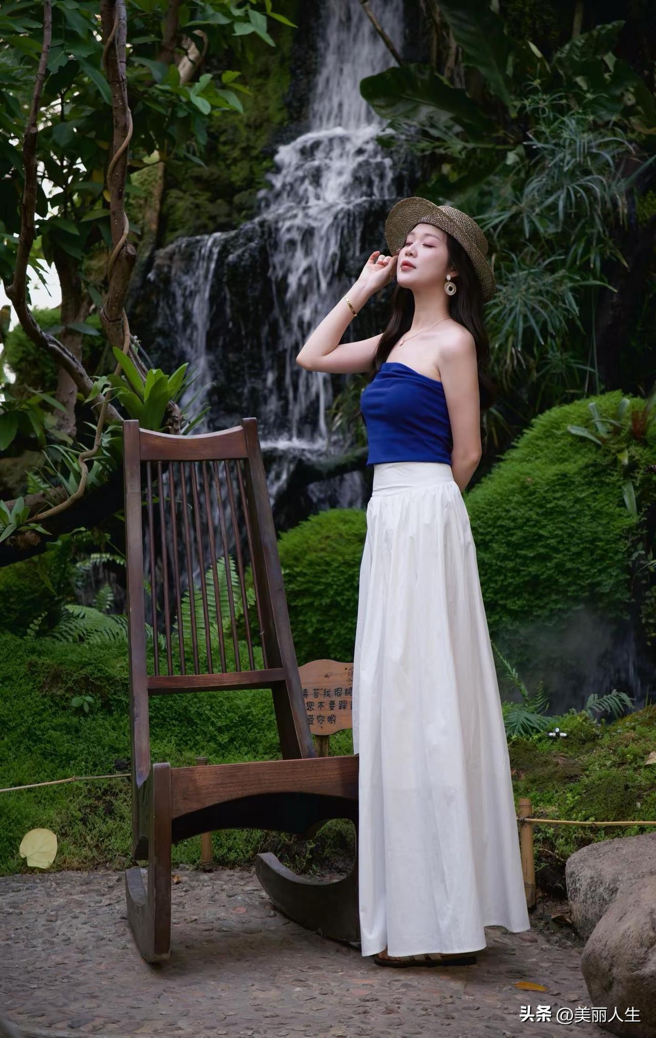 绿树掩映中,美人如画。