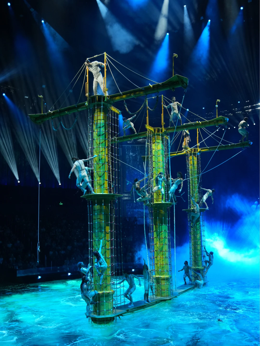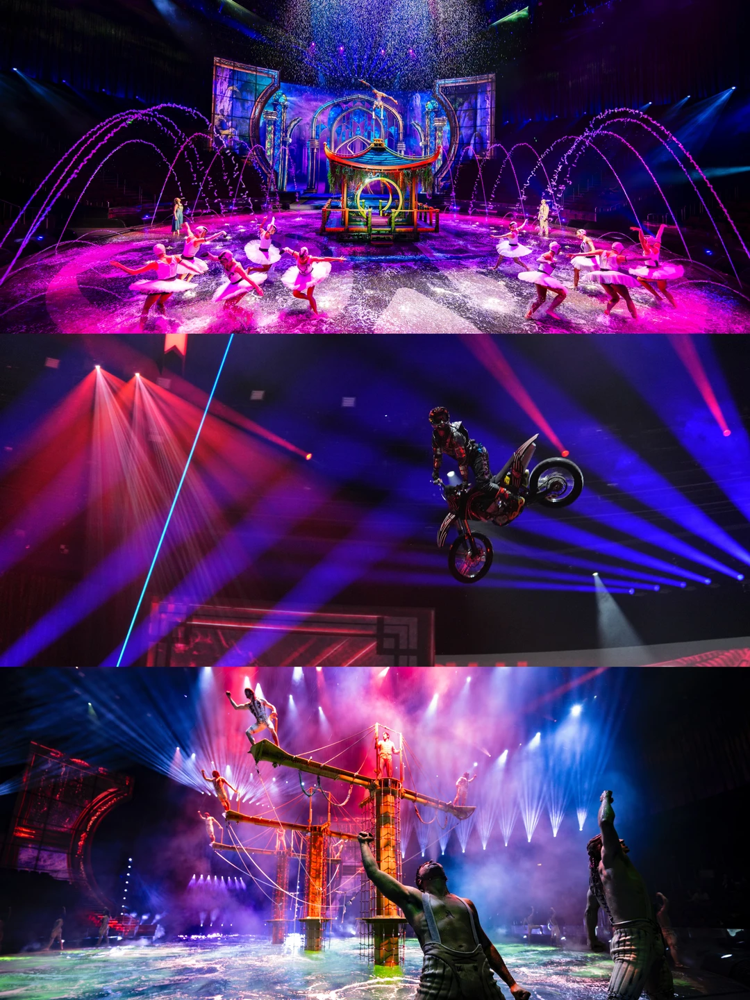 来新濠天地当然不能错过《水舞间》,270°环形沉浸式剧场,集高空杂技、水上芭蕾、戏剧叙事、配合光影与水幕特效,视听冲击力极强,每一幕都能用震撼到失语来形容~