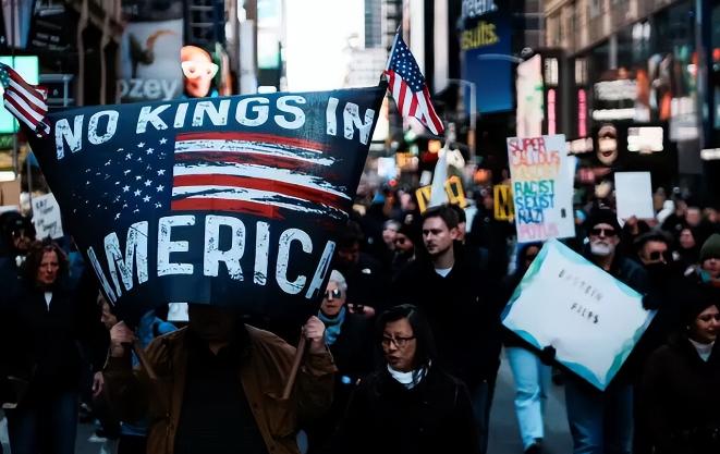 抗议现场,“维护民主、反对独裁”“权力需要监督”的标语随处可见,“不要国王”的呼声此起彼伏,事实上,2025年以来美国已爆发两次大规模同类抗议,参与人数逐步增加,足以说明民众对权力制衡的迫切需求。