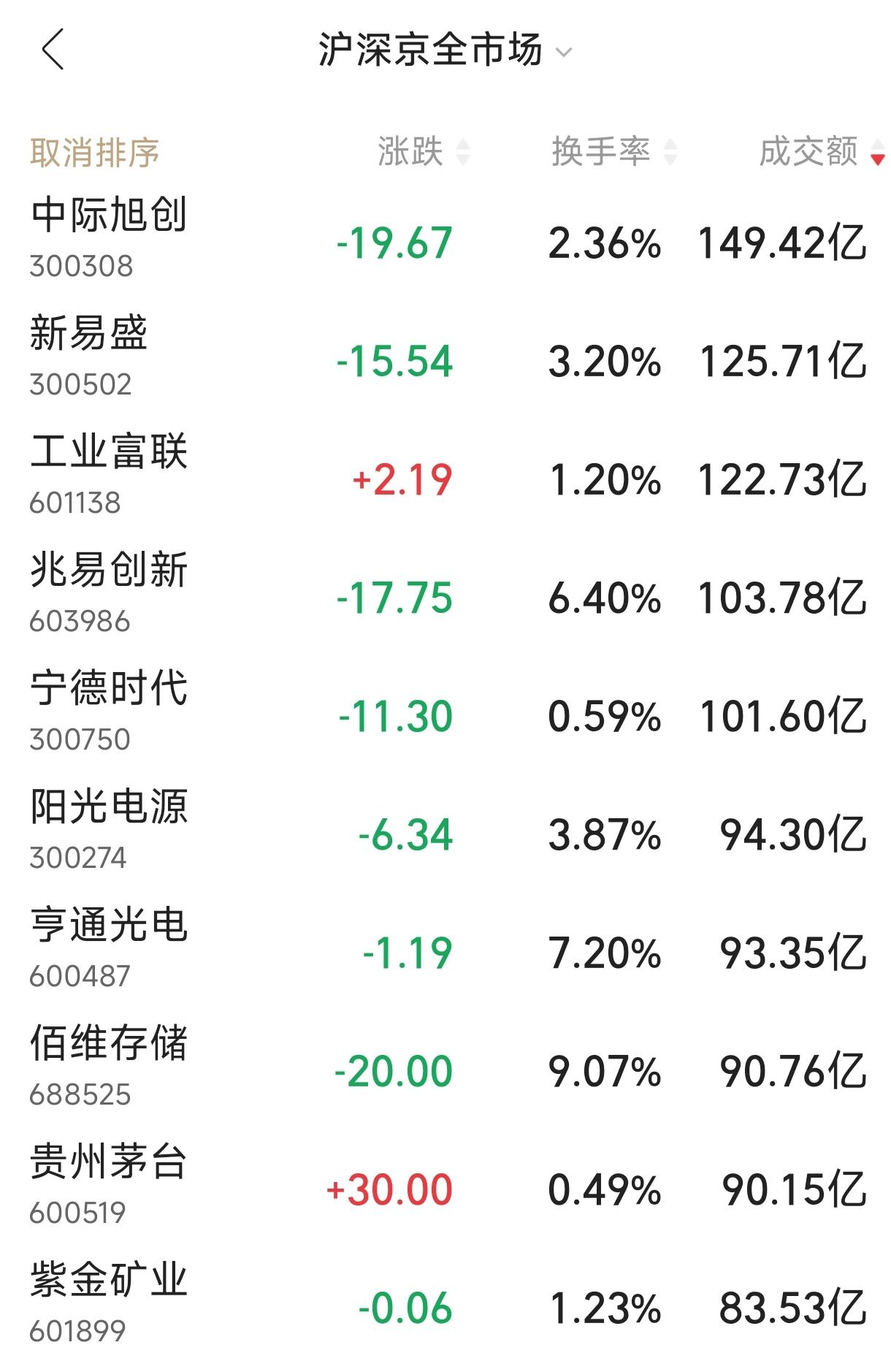 ●中际旭创,成交149亿元,-3.34%