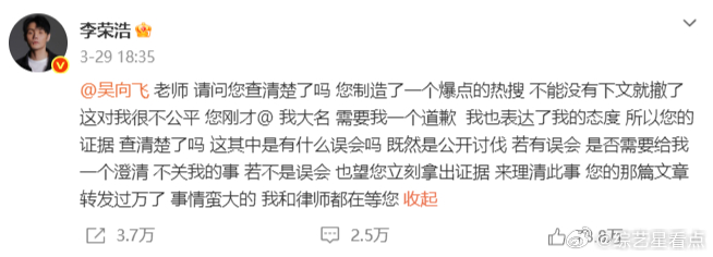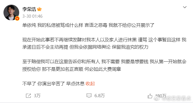李荣浩只有我在愚人节玩真的 就是很刚呀,什么事情都是有回应的,而且也是会澄清。