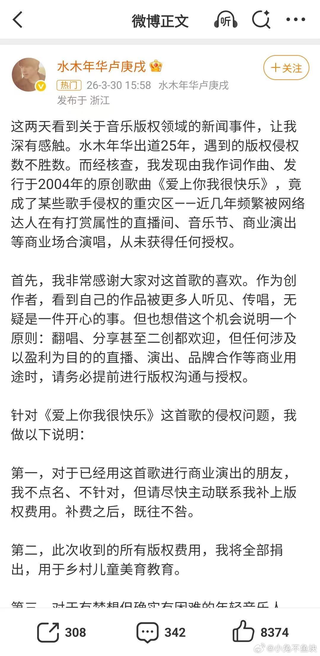 水木年华维权 每首歌都是创作者的心血结晶,绝不允许被随意侵权盗用,支持维权。