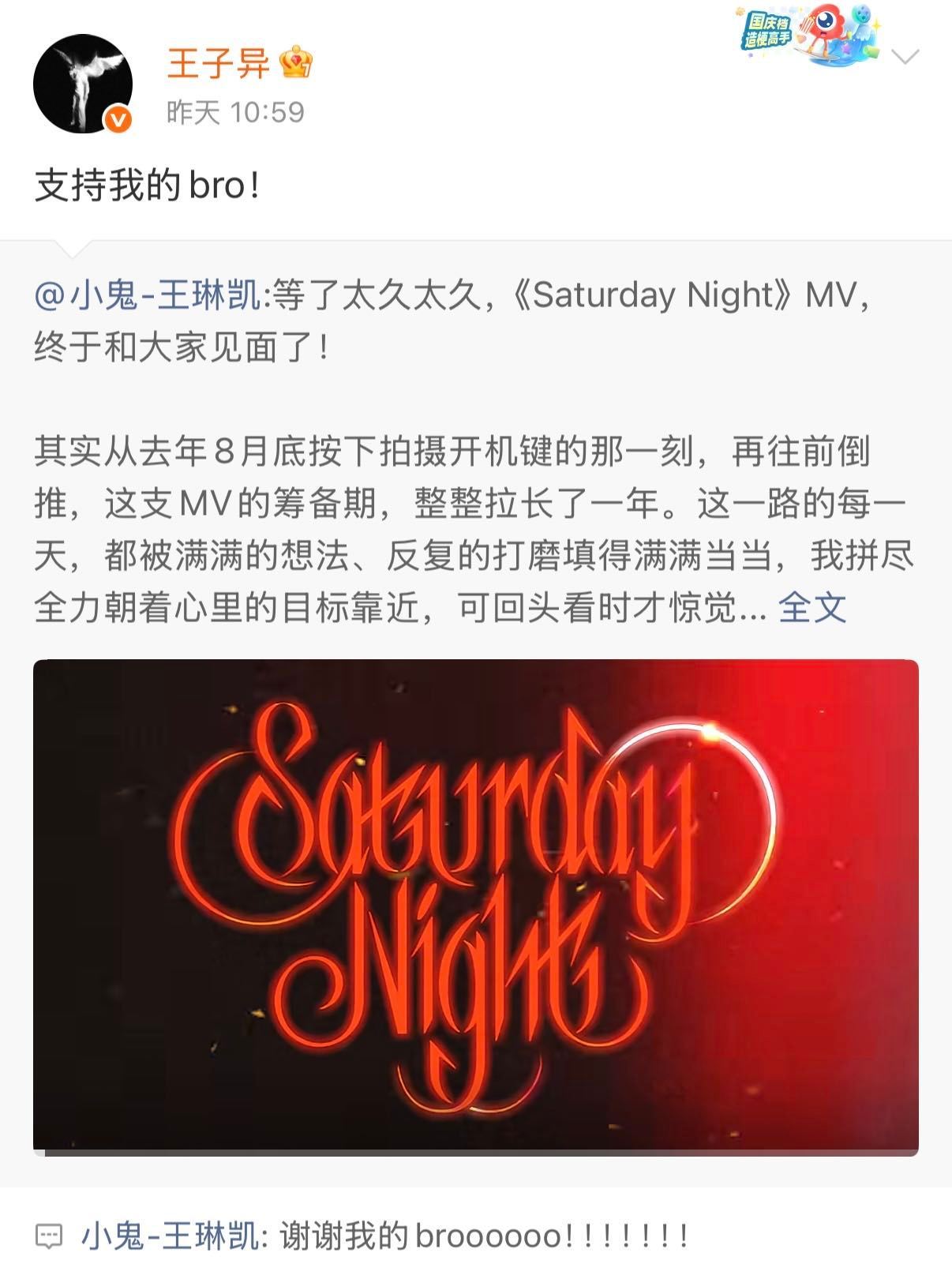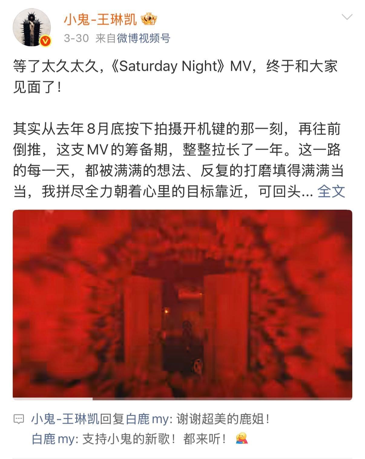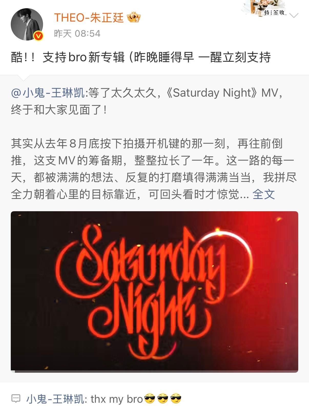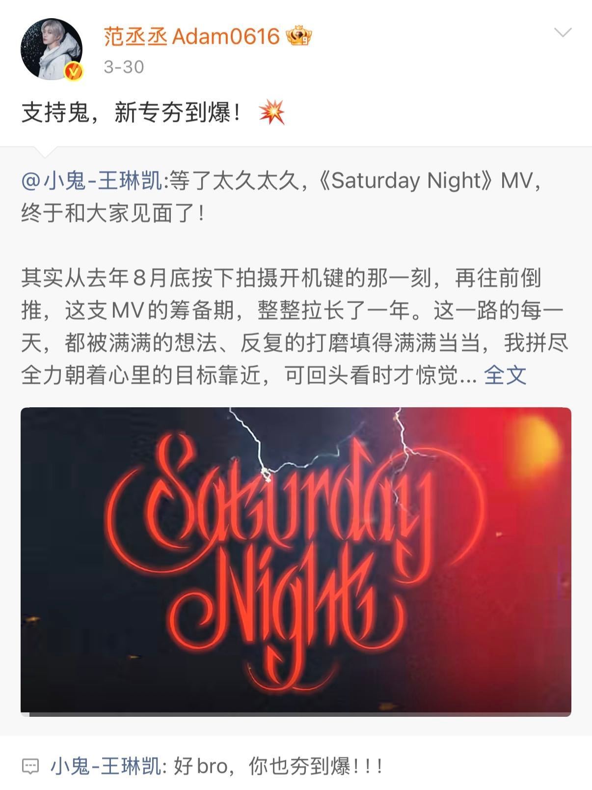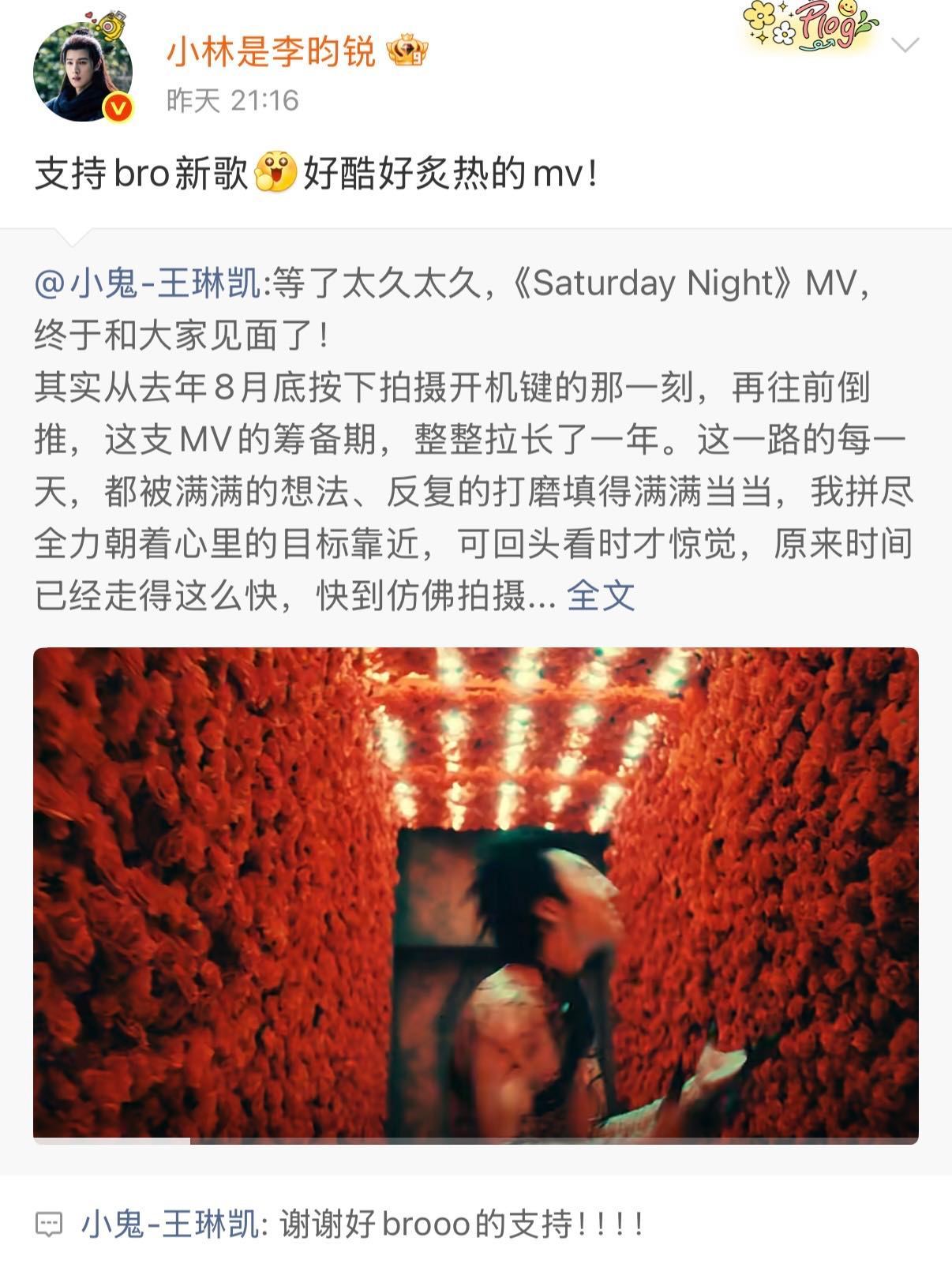小鬼人脉谁懂啊!小鬼新MV《Saturday Night》一上线,内娱半个好友圈都来打call了!白鹿、宋佳、李昀锐、黄子弘凡、王安宇、王子异、朱正廷、范丞丞、黄明昊、陈立农等 集体转发或评论,这人缘太好了!