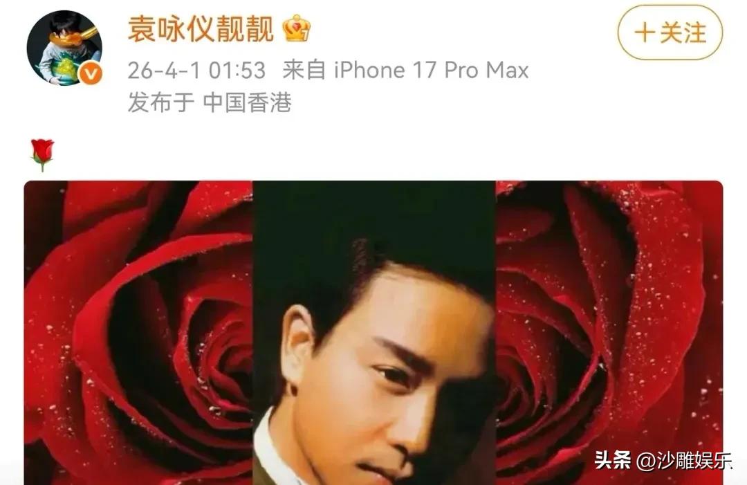 袁咏仪,凌晨发文! 4月1日凌晨,当大多数人还在睡梦中时,袁咏仪的社交平台突然更新了一条动态。没有长篇大论,没有煽情文案,只有一张旧照,两朵红玫瑰,却让无数人瞬间破防。 照片中间,是那张我们再熟悉不过的面孔——张国荣。左右两朵红玫瑰静静簇拥,像极了无声的陪伴。就这么简简单单的一则动态,却在深夜里炸开了锅。 有人说,每年这个日子,只要看到袁咏仪发文,就知道,又到了该想念哥哥的时候了。 23年了,有些人走了,却从未离开 2003年的今天,张国荣纵身一跃,留给世界一个永远无法填补的空白。一晃23年过去,每年的4月1日,对很多人来说早已不是愚人节,而是一个安静怀念的日子。 袁咏仪这些年的怀念方式,从未变过——不炒作、不煽情、不消费。每年这一天,她只是安安静静地发一张照片,配一朵玫瑰,像极了一个老朋友在轻声说:嘿,我又想你了。 网友留言说:“靓靓每年都记得,从不缺席。这种沉默的温柔,比任何长篇大论都戳心。”还有网友感慨:“别人都在蹭热度,只有她是真的在想念。” 一张图,两朵花,胜过千言万语 袁咏仪和张国荣的友情,要追溯到上世纪90年代。两人合作《金枝玉叶》《大富之家》等电影,戏里戏外都亲如兄妹。张国荣曾公开说过,袁咏仪是他最疼爱的后辈之一。 这份情谊,在张国荣离开后,被袁咏仪用最安静的方式延续了下来。她没有大张旗鼓地办纪念活动,没有在各种综艺里反复提及,只是每年这一天,用几乎同样的方式,默默表达一份思念。 网友评论道:“靓靓的玫瑰,是我们和哥哥之间最温柔的约定。每年看到,就知道还有人记得他,真好。” 为什么我们还在怀念张国荣? 有人说,张国荣离开23年了,为什么我们还在怀念他? 因为他是《霸王别姬》里“不疯魔不成活”的程蝶衣,是《倩女幽魂》里憨厚书生宁采臣,是《阿飞正传》里那只“无脚的鸟”。他的歌、他的电影、他的一颦一笑,早已刻进好几代人的青春里。 更重要的是,在那个年代,他教会了我们什么是真正的风华绝代,什么是敢爱敢恨的勇气。他的离开,像是一个时代的落幕。而每年4月1日,我们都用怀念的方式,为那个时代点亮一盏灯。 袁咏仪这条动态之所以能刷屏,恰恰因为它的“简单”。在这个什么都讲究流量的时代,真正的怀念反而显得格外珍贵。她不消费逝者,不贩卖悲伤,只是用自己的方式,记住一个人。 这大概就是最好的怀念方式——你在的时候,我们好好相处;你走了,我安静地记住你。不需要全世界都知道,但我知道,你在。 23年了,风继续吹,我们继续想你。