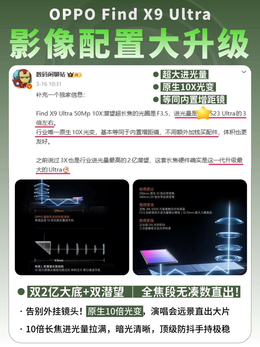 OPPO即将重磅推出 OPPO Find X9 Ultra—— 这台直接把「增距镜」塞进手机的影像机皇!熬夜整理了一波目前已有的超前爆料,快来一起看看👇